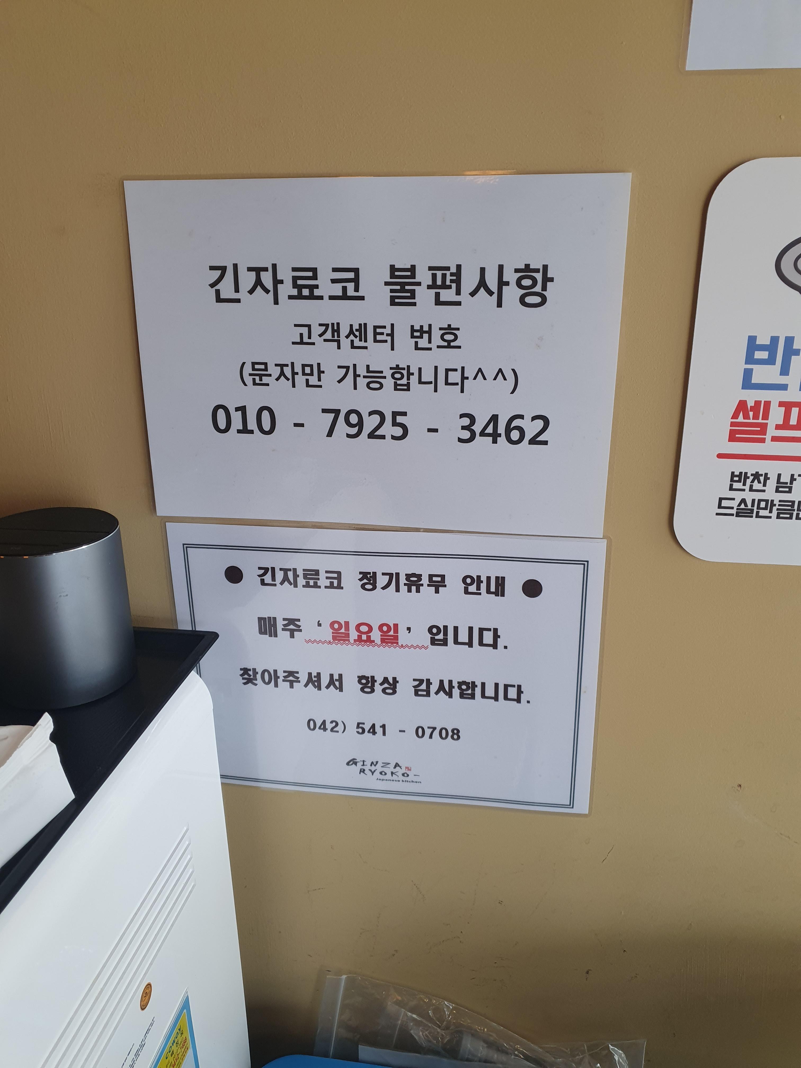 관저동 긴자료코 주일 일요일에는 쉬는 날입니다. 그러니 일요일날은 방문 하지 마시길 바랍니다.