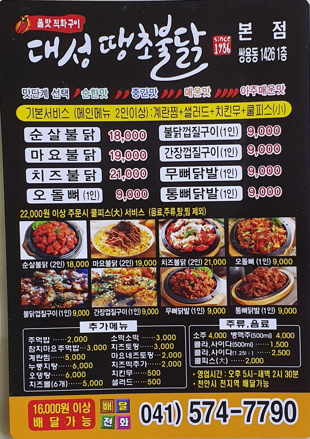 -상호 : 대성 땡초 불닭 (천안불닭)