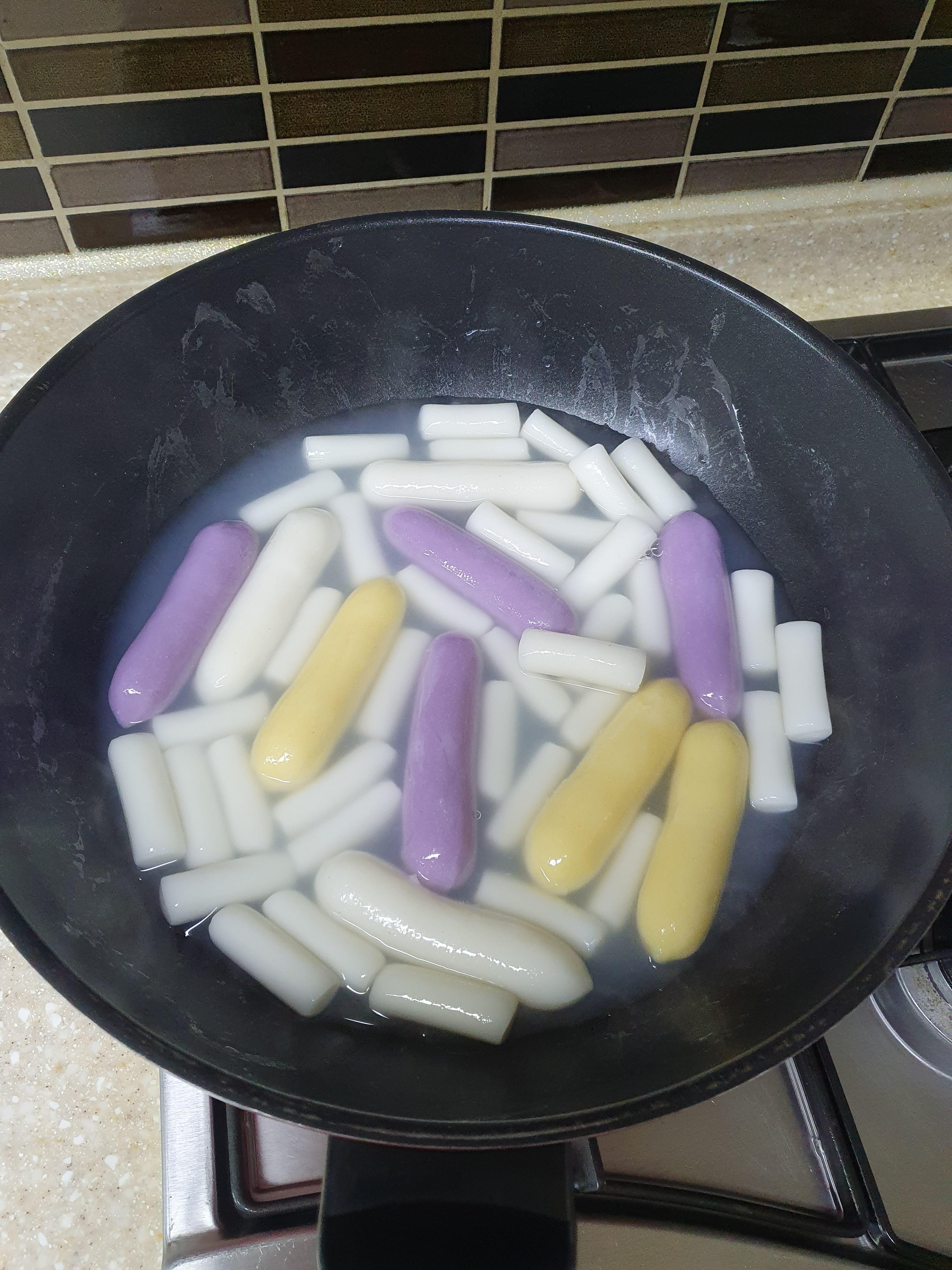 레시피는 떡을 우선 불릴 필요없이, 끓는물을 넣어서 3분정도 끓어주고, 그담에 물을 따라 버리고 여기에 어묵과 섞인 양념장을 넣고 쉐이킷! 해주면 요리는 끝이 납니다.