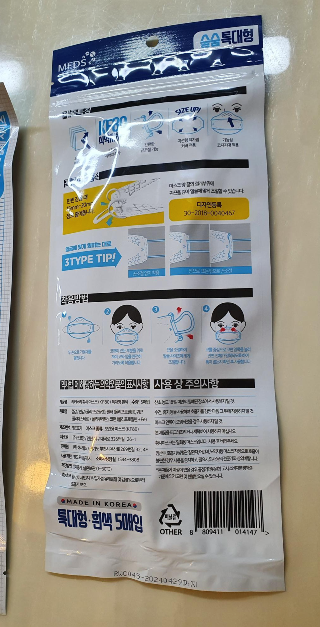 근데.. 마스크에 KF80이라고 각인이 찍혀 있으면, 쓸수 없는데..
