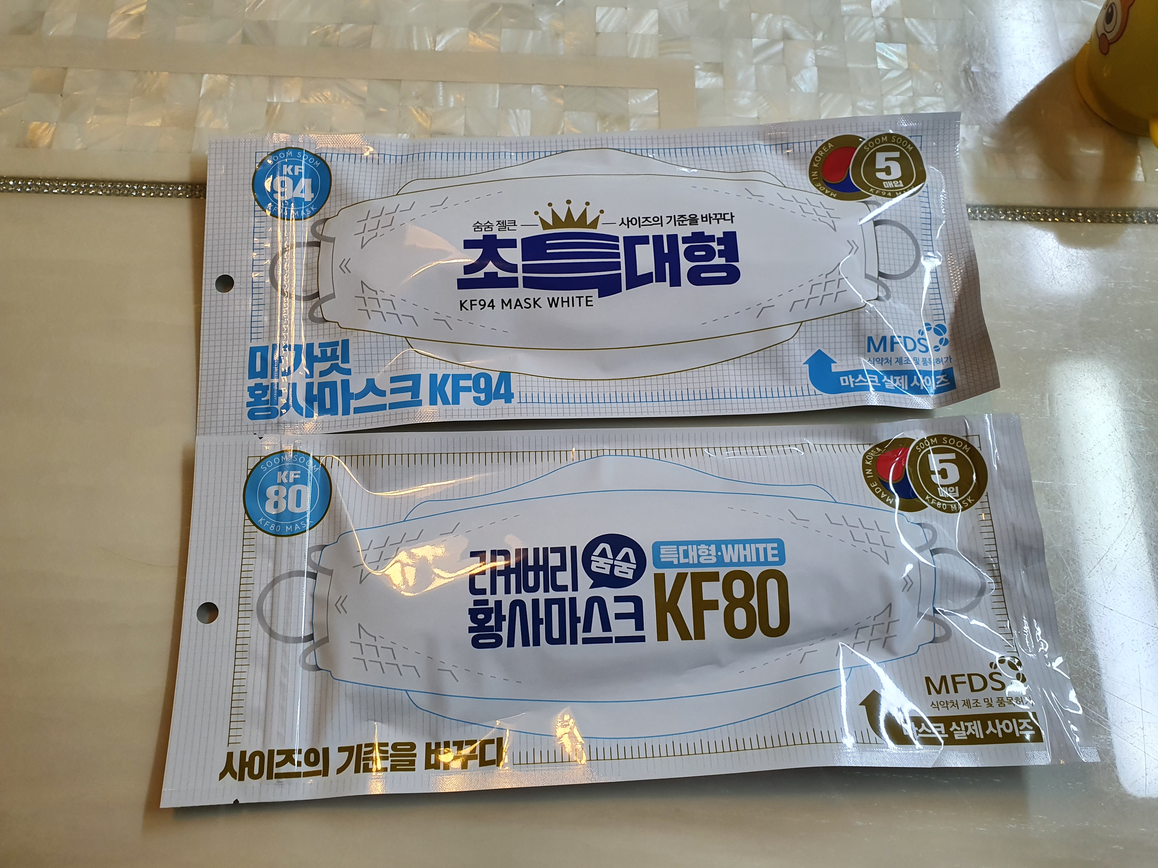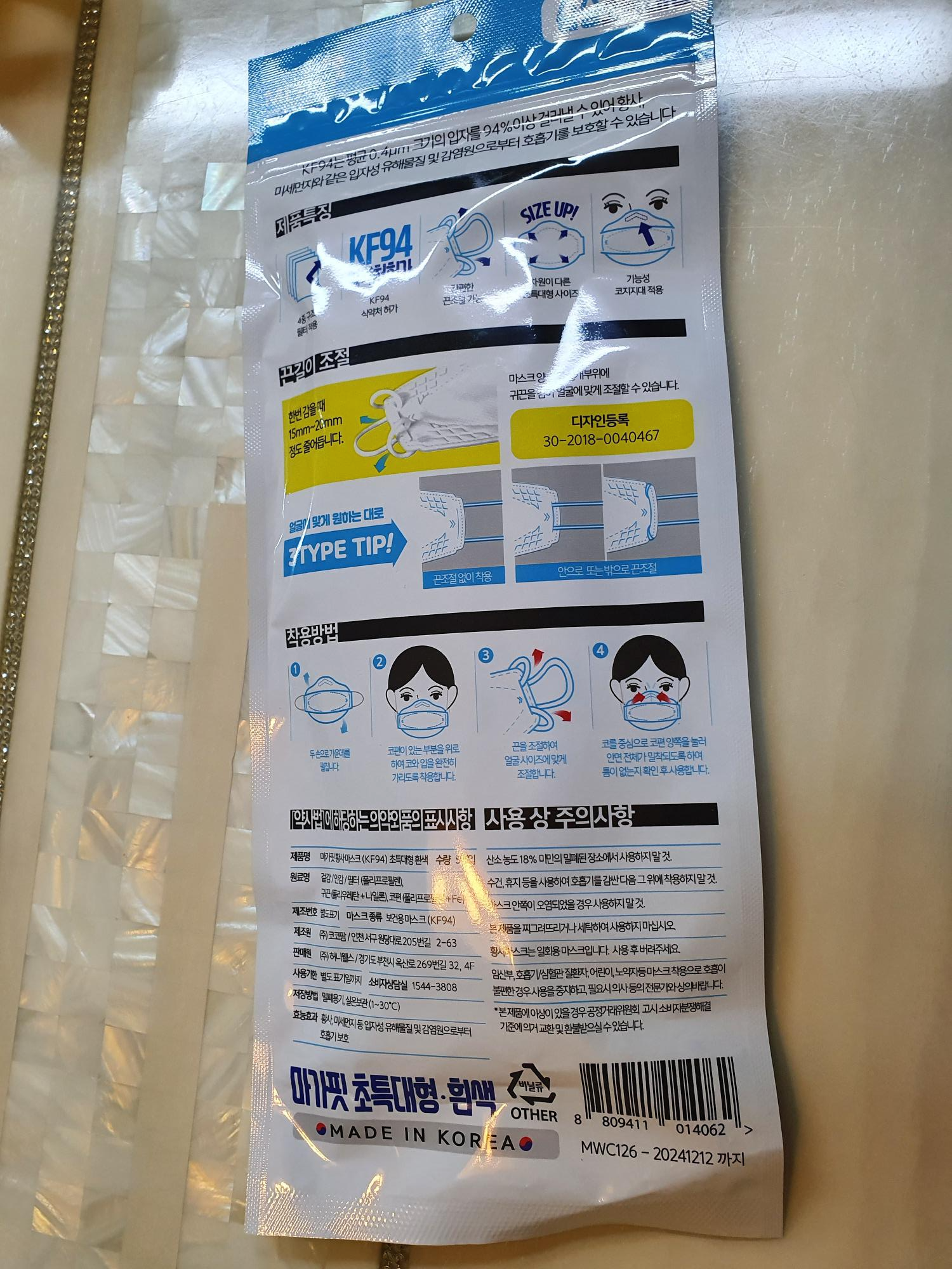 마스크 크기는 표기해있는 내용이 KF 94는 초특대형이라고 적혀 있고, KF80은 특대형이라고 적혀는 있으나,