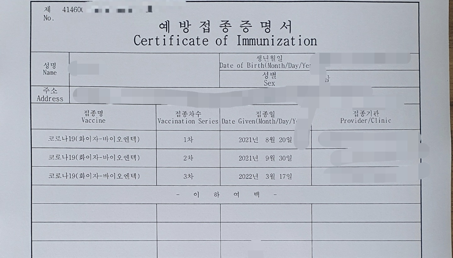 근데 이번주 3. 17.(목) 오전 11시경에 화이자백신 3차 코로나19 예방접종을 받았다.