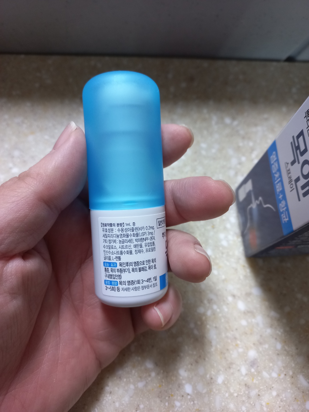 인후염 스프레이스 목에 뿌리자마자 화~ 한 느낌을 준다.