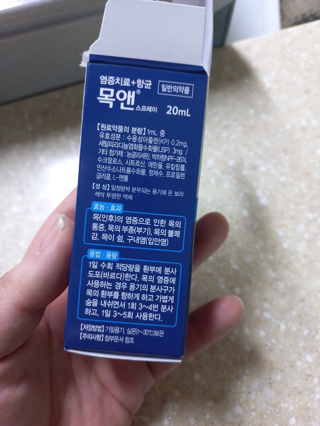 뿌리는 인후염 치료제 목앤 스프레이 사용가능 연령에 관해 물어봤다.