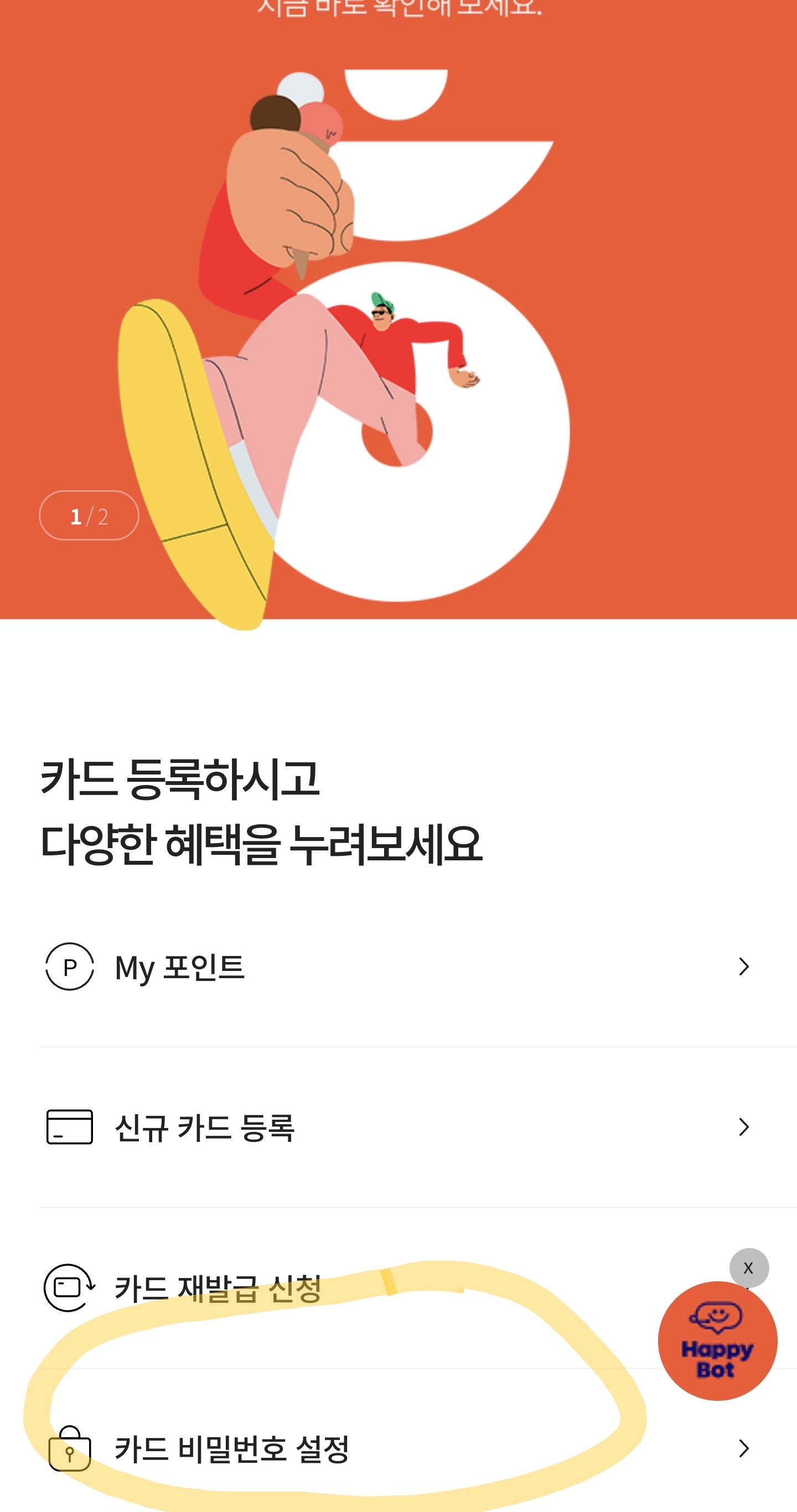 카드비빌번호 설정을 하고 있지 않다고 뜰꺼예요! 물론 전에 이미 해피포인트 카드 비번을 설정하신 분들은