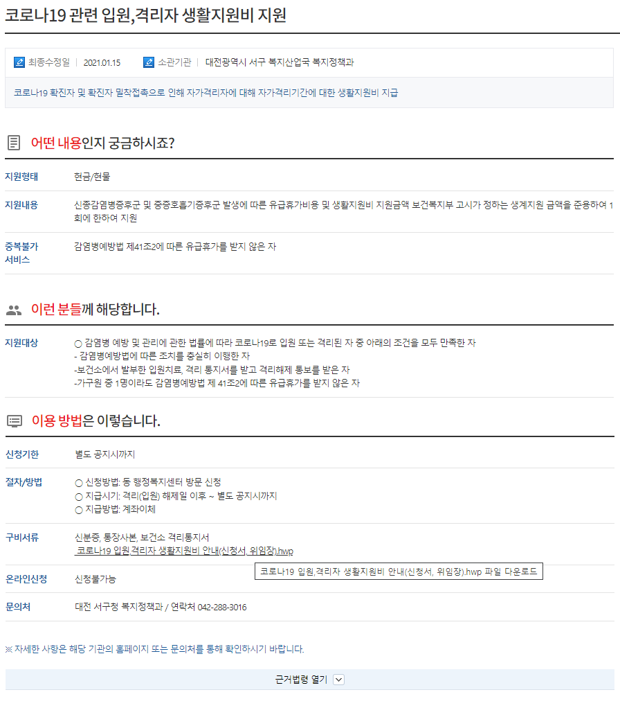 코로나19 자가격리가 생활지원비를 신청하려고 알아봤습니다.