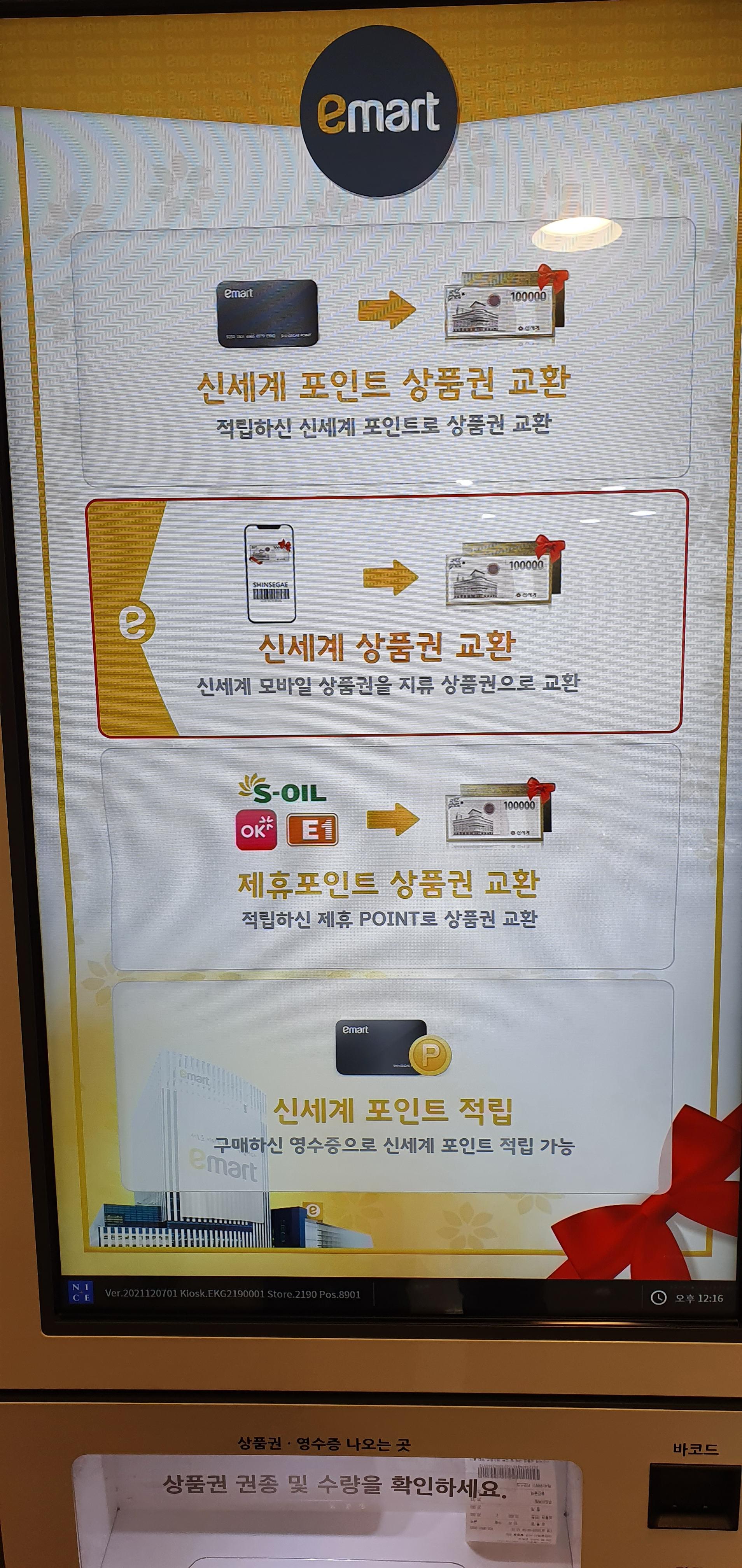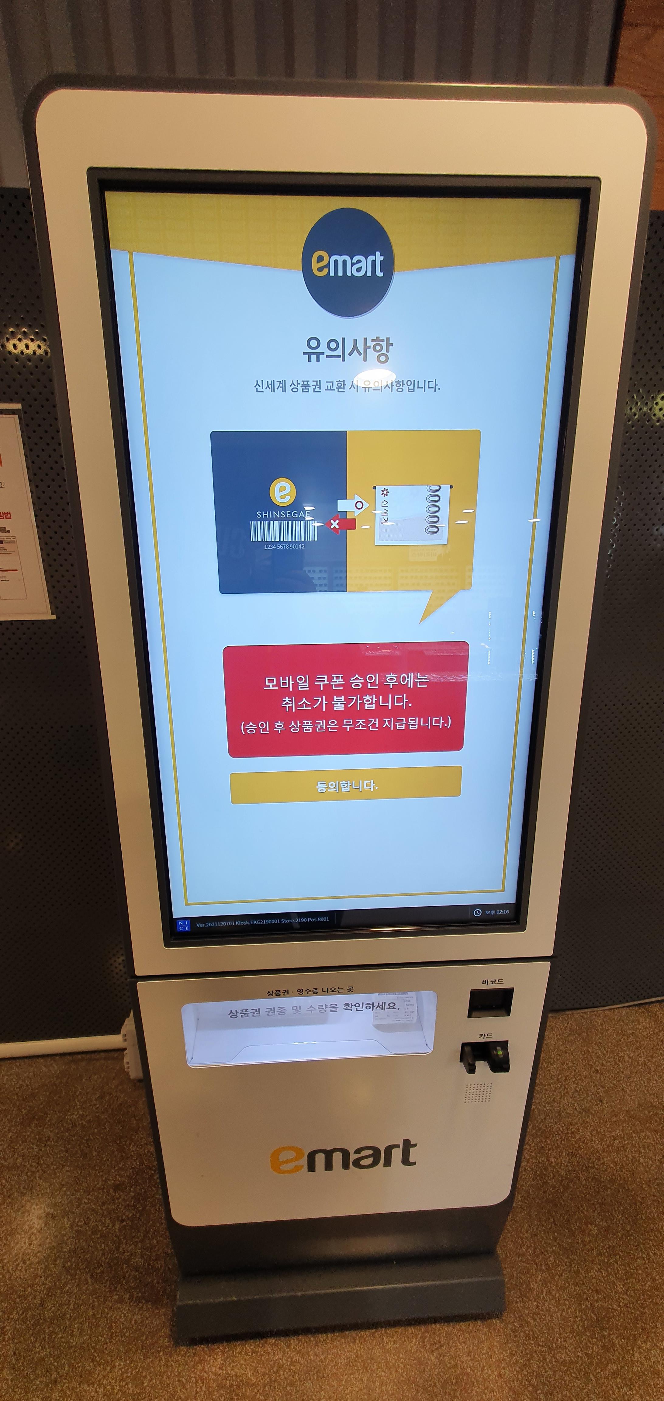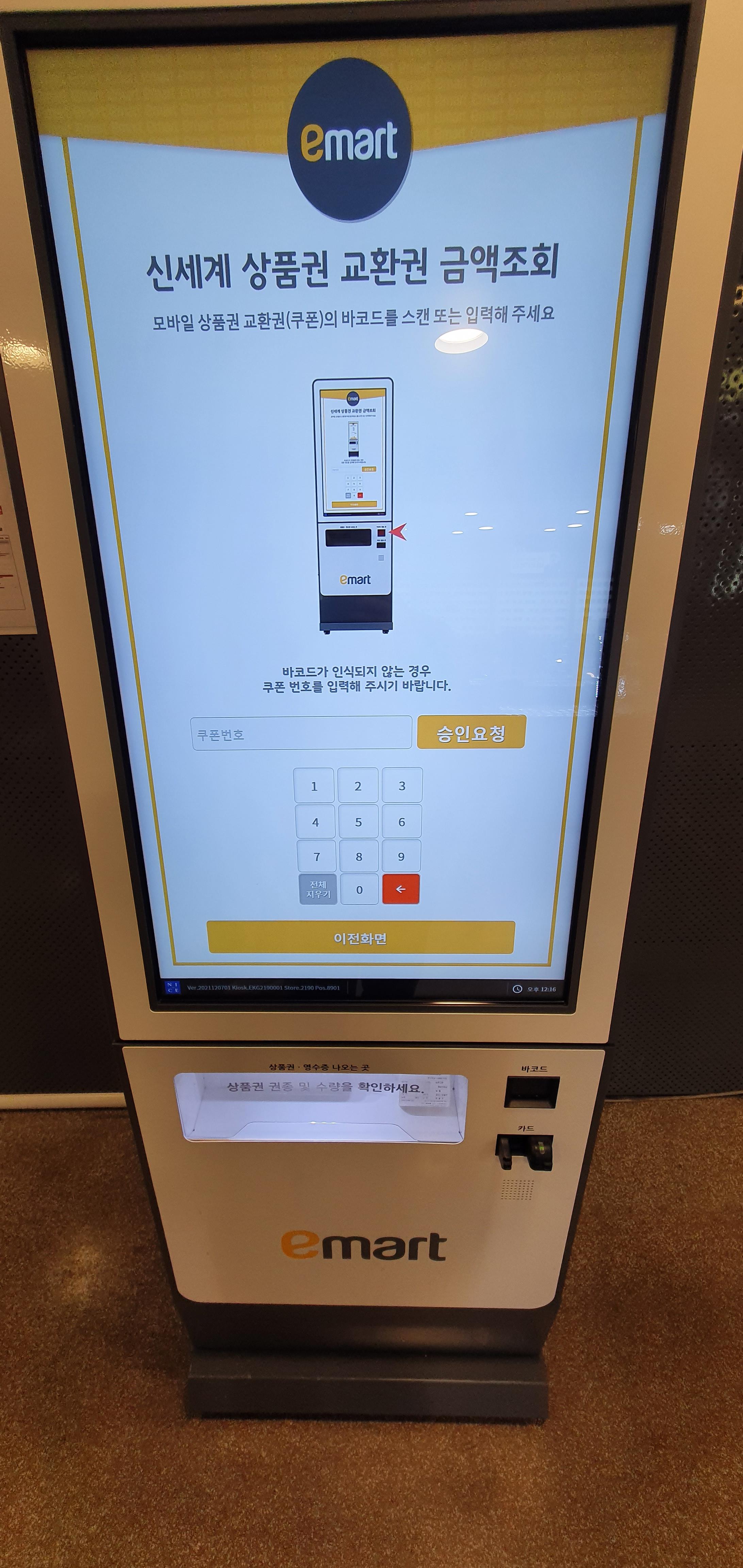 이렇게 하면 문자로 받은 신세계 상품권을 편하게 이마트 상품권 키오스크를 이용해서 교환이 가능합니다.