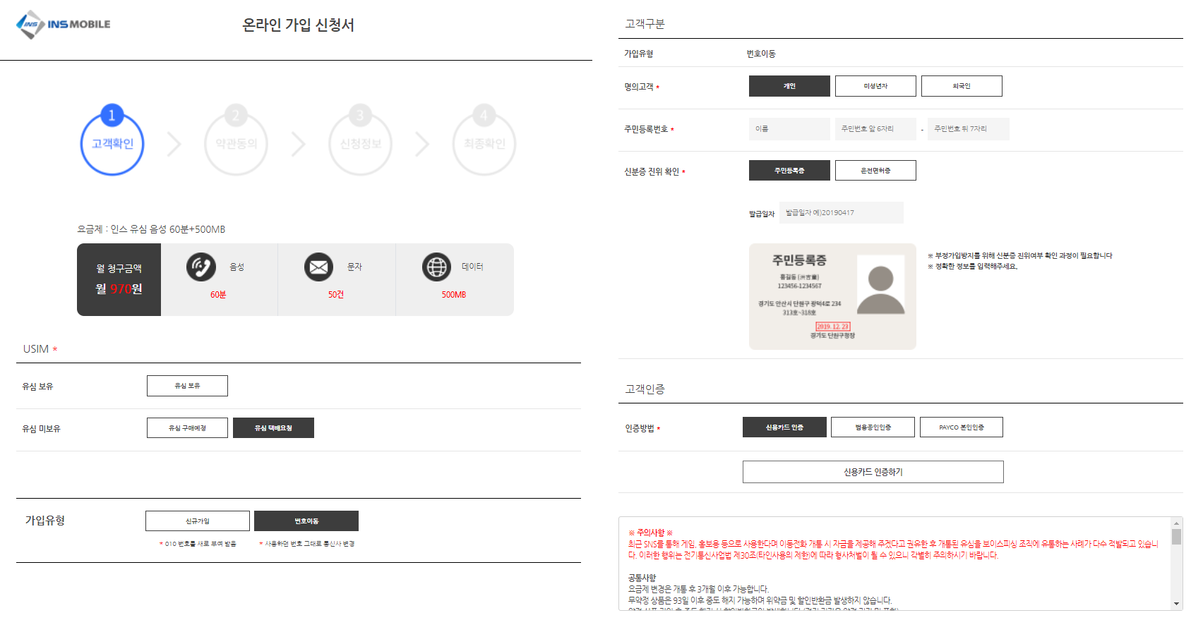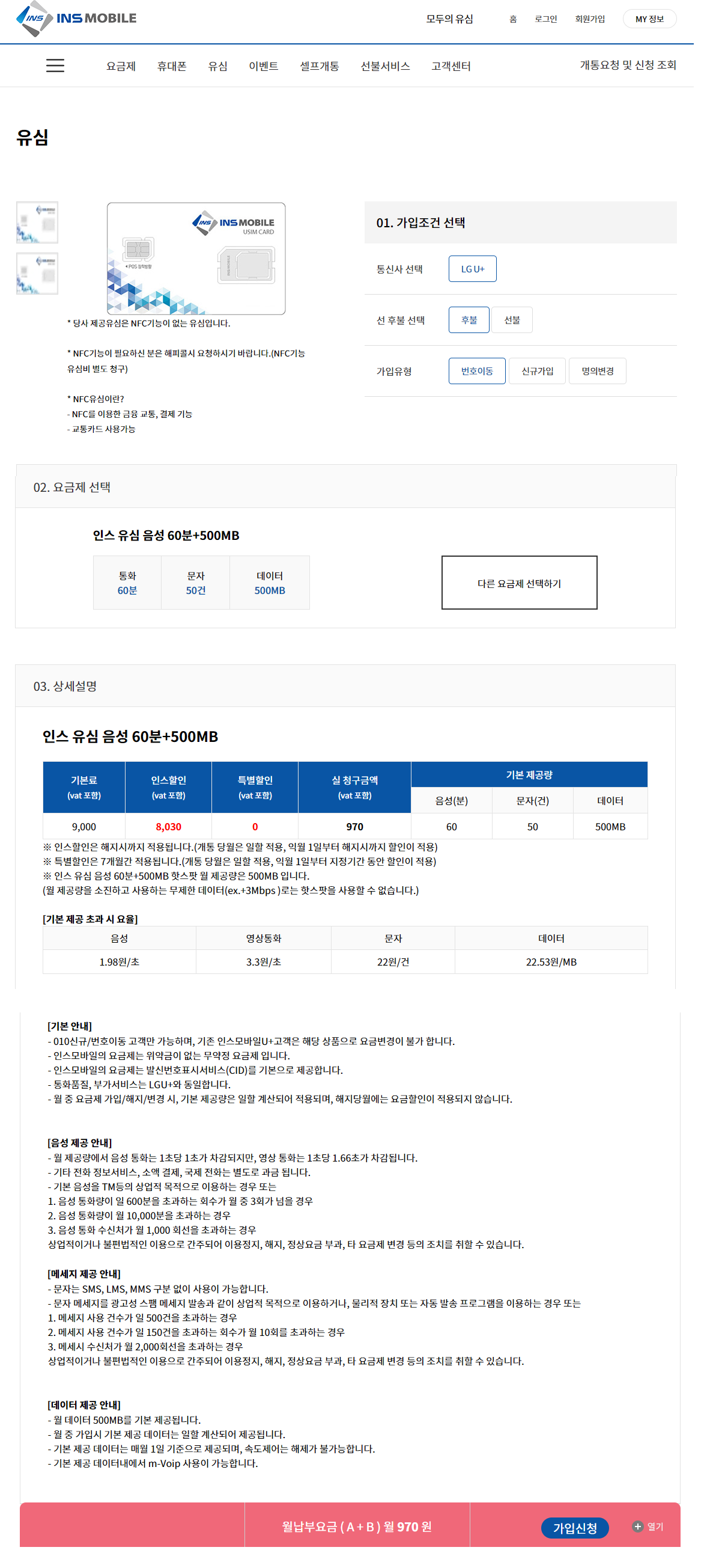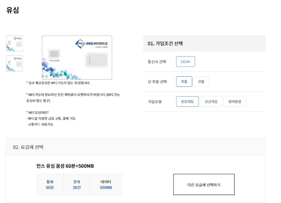 인스모바일 "인스 유심 음성 60분+500MB 요금제" 신청방법에 관해 살펴보았습니다.