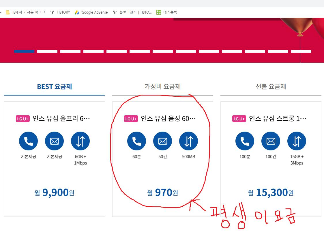편하게 그냥 한달에 970월만 내고 쓰자 라는 생각을 가진 분들이 선택하면 됩니다.