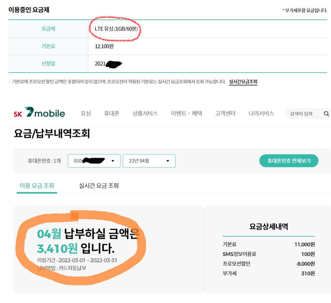 원래는 sk 7모바일이라는 업체에서 알뜰폰을 쓰고 있었습니다.