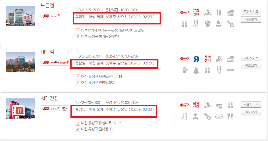 대전에 있는 대형마트 휴무일을