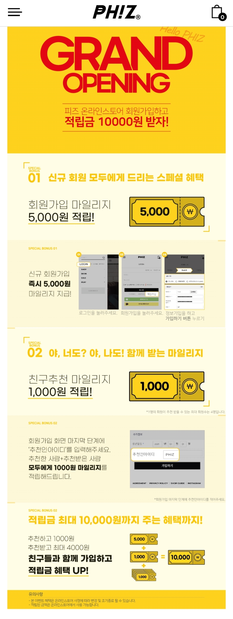 헤지스 피즈 온라인 스토어에 가입하면