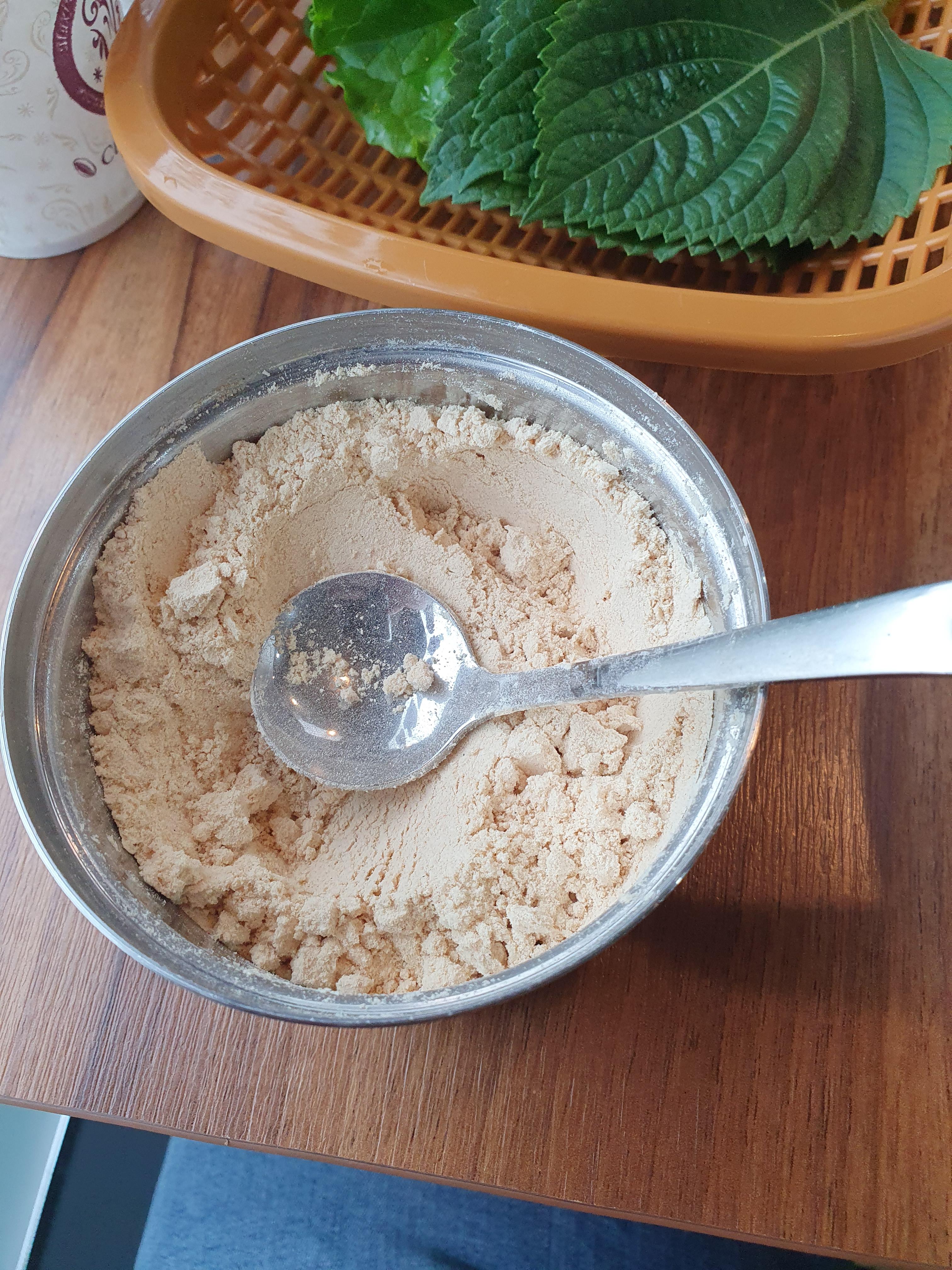 콩가루를 넣어야지 송어회의 좀더 고소한 맛이 난다고 하더군요. 그래서 콩가루를 넣은다고 합니다.