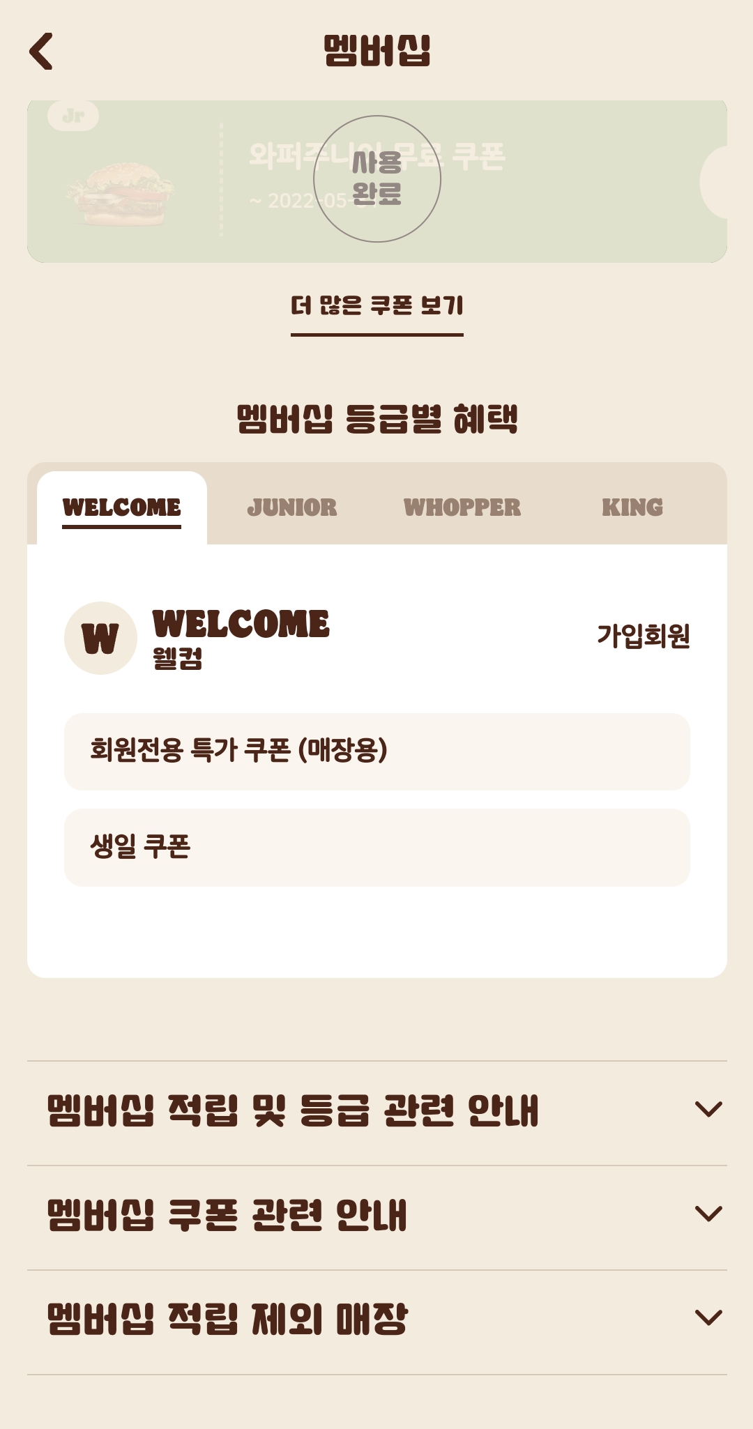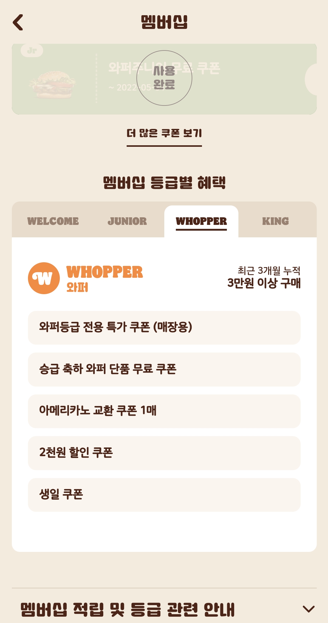 근데 1달이 지나니 버거킹 멤버쉽 등급이 "주니어"가 되어서