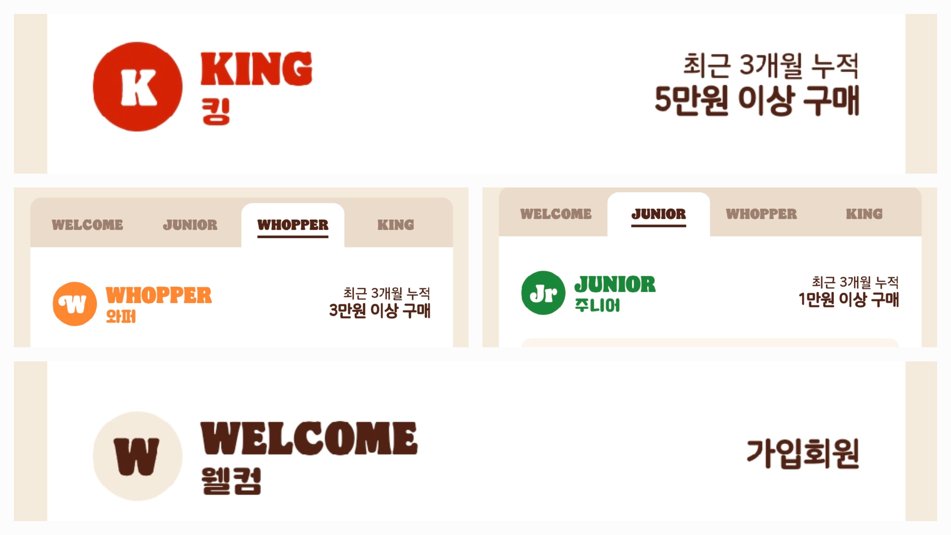 참고로 버거킹 멤버쉽 등급의 종류는 아래와 같습니다.
