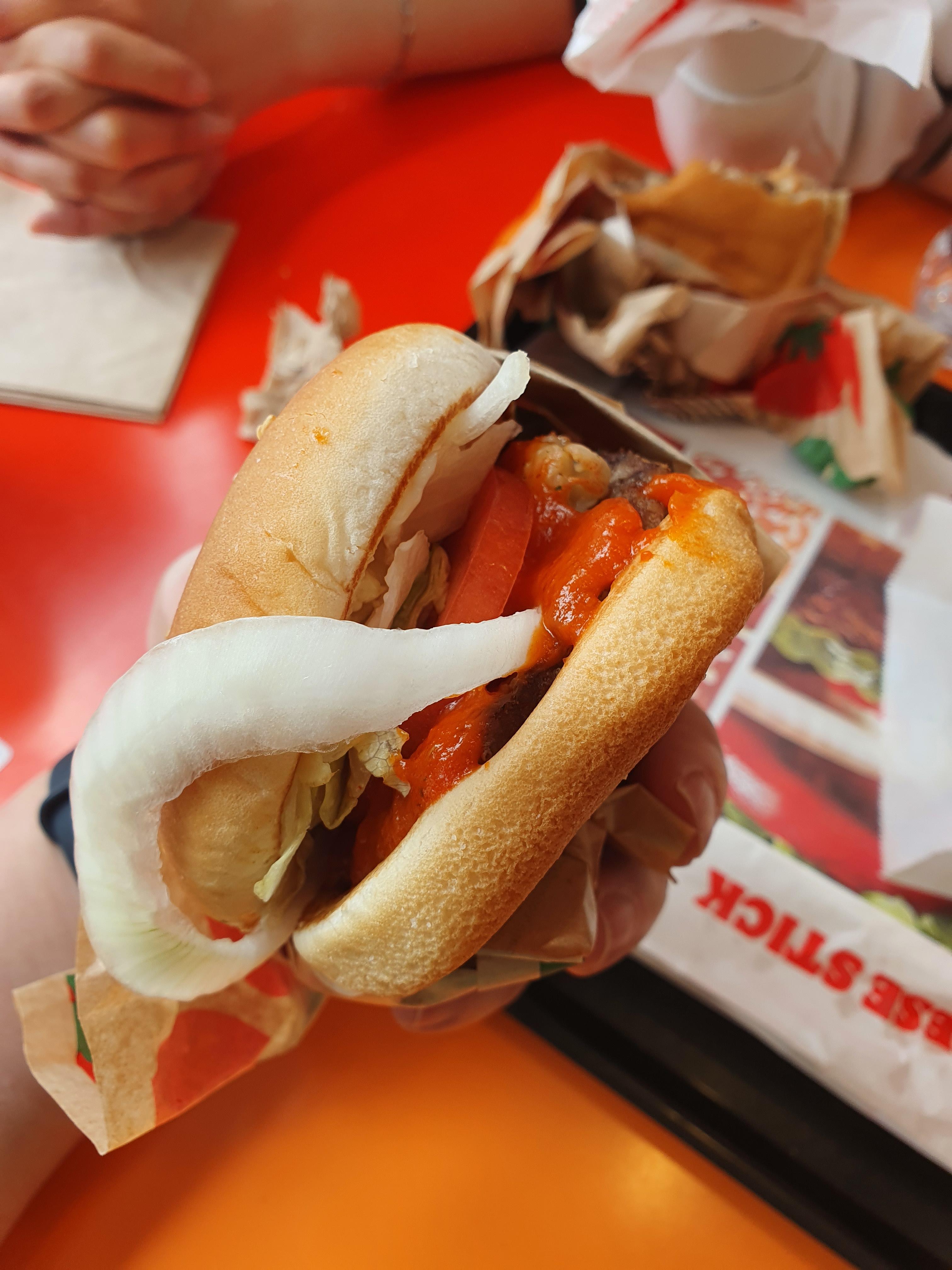 일반 고기 패티도 들어가 있고, 구운 새우가 들어가고 살짝은 매콤하게 칠리소스가 듬뿍들어가 있어서..