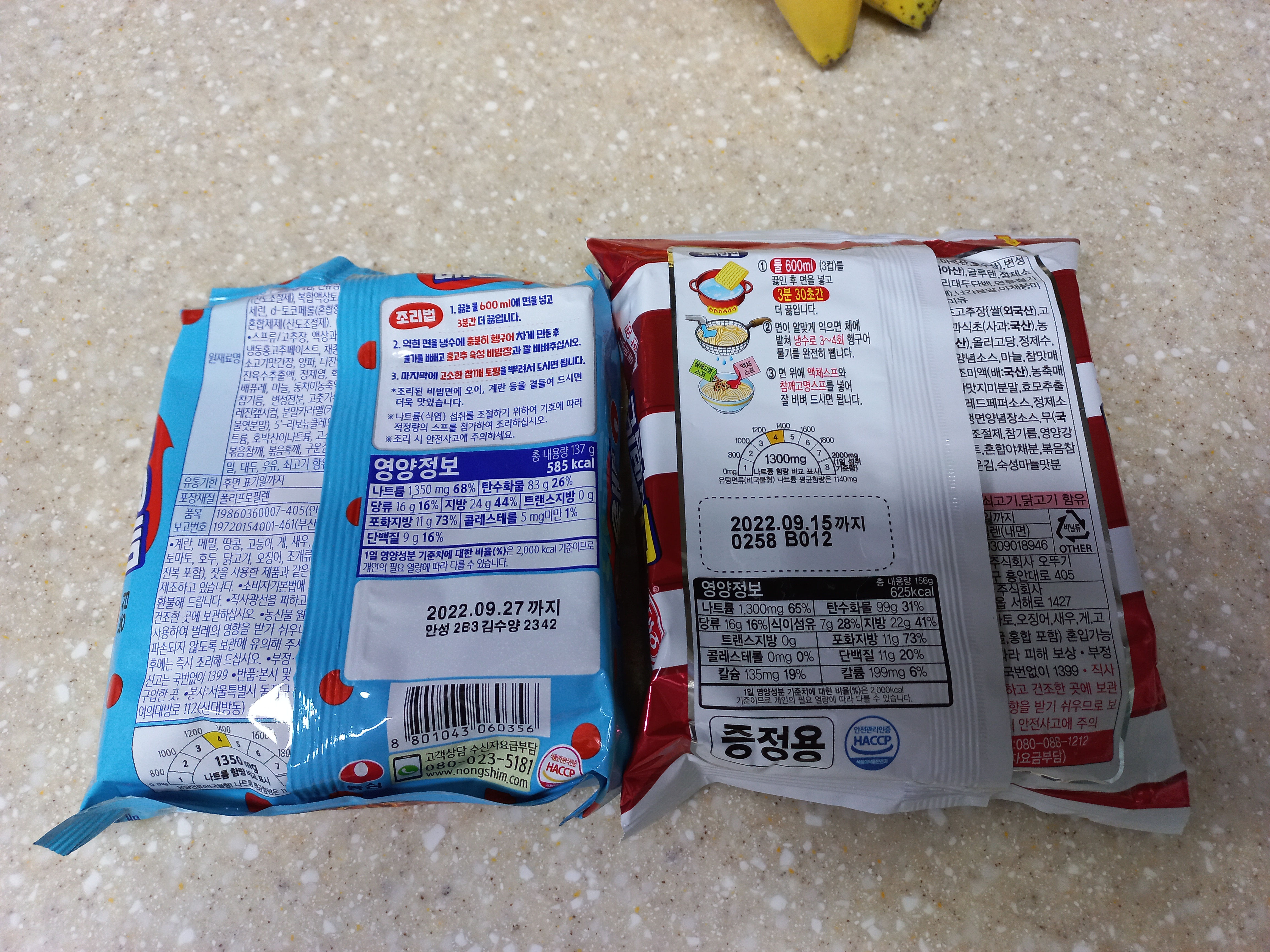 조리방법이야, 둘다 비빔라면이기 때문에 동일합니다.