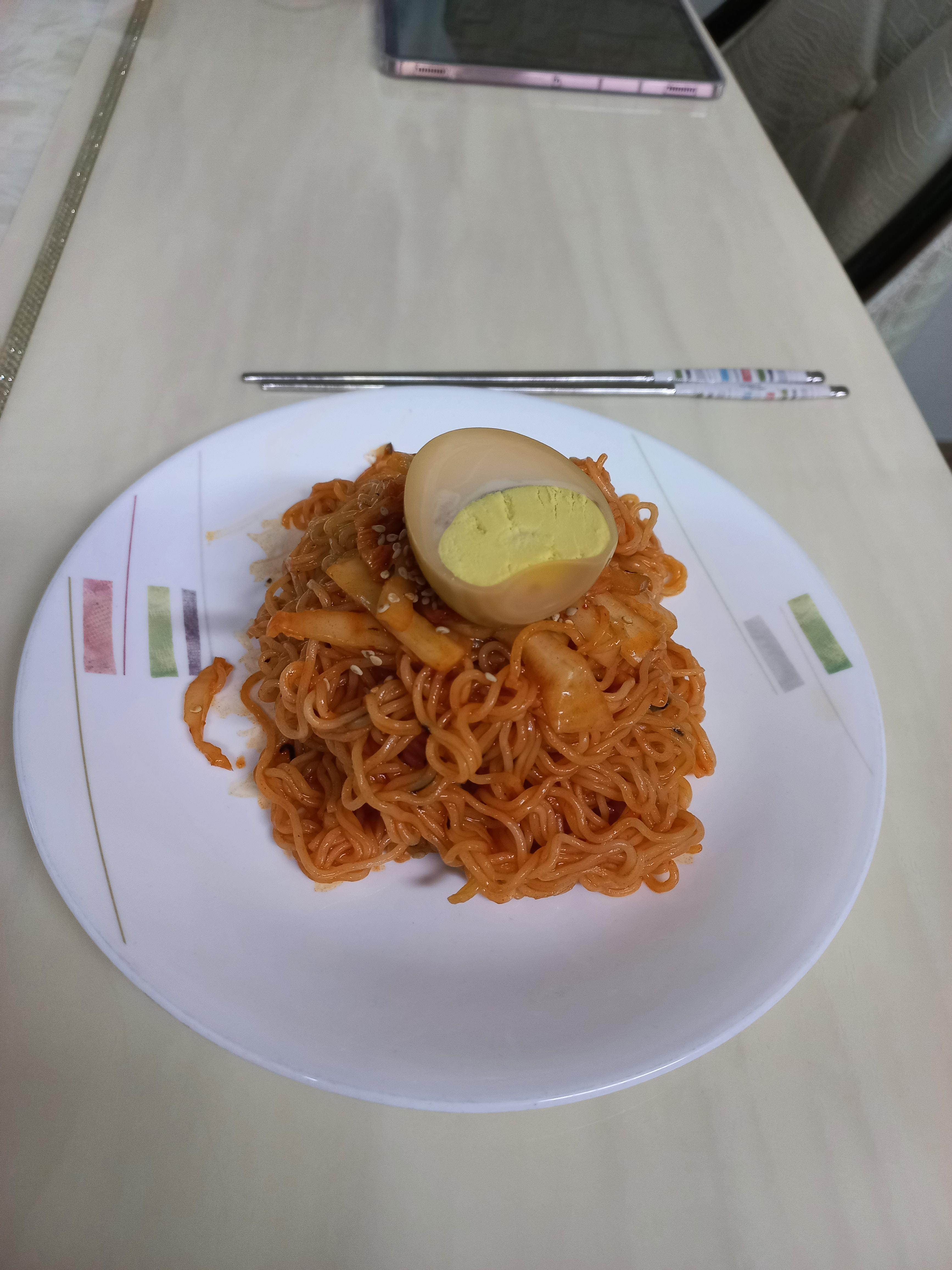 이정도면 뭐~ 집에서 남편이 만든 비빔면 치고는 충분히 맛있게 잘 세팅한거 같아요.