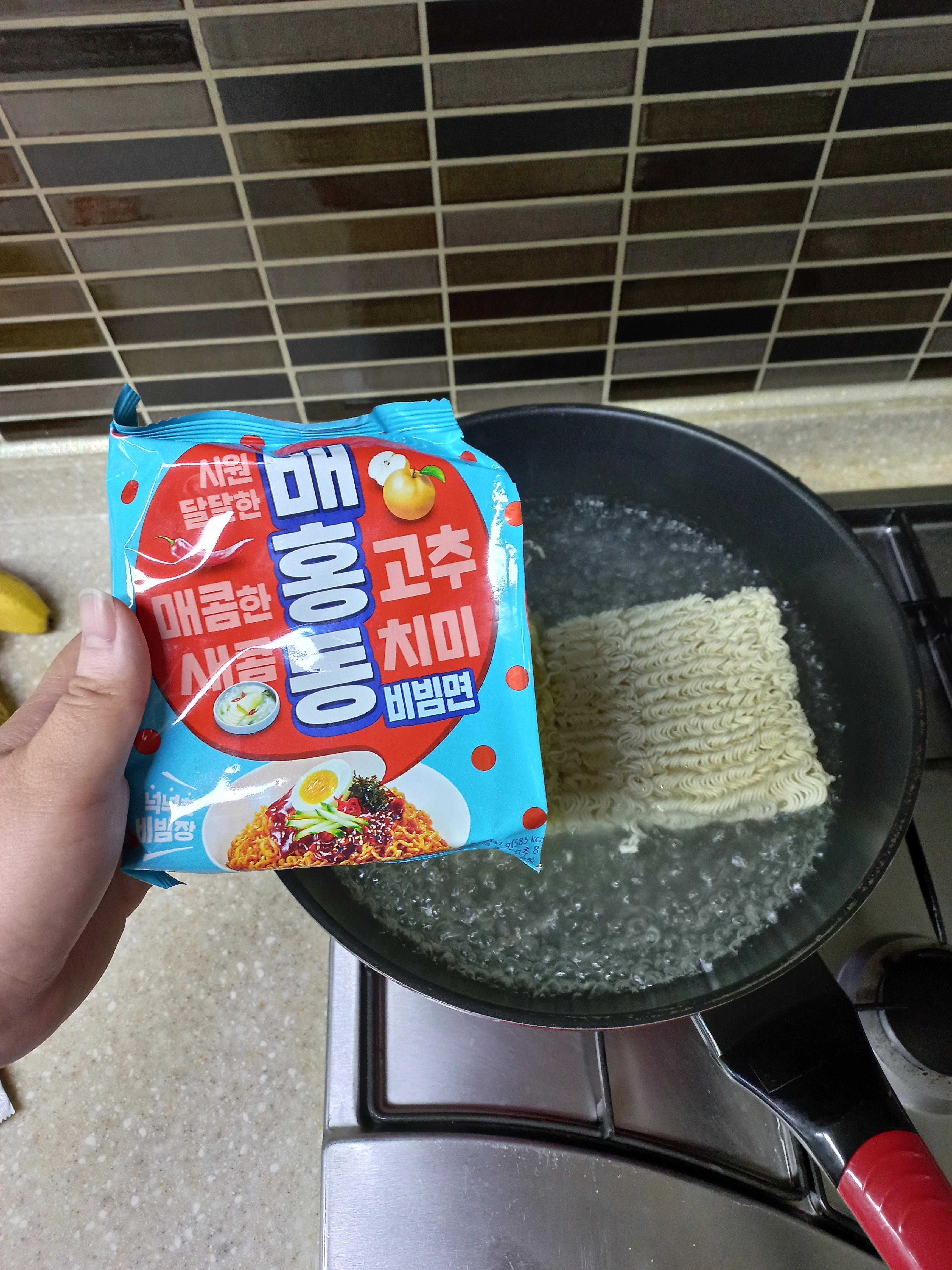 이번에 두개의 비빔면을 콜라보해서 각각 1봉지씩 꺼내서 둘을 합쳐서 먹어보려 합니다.