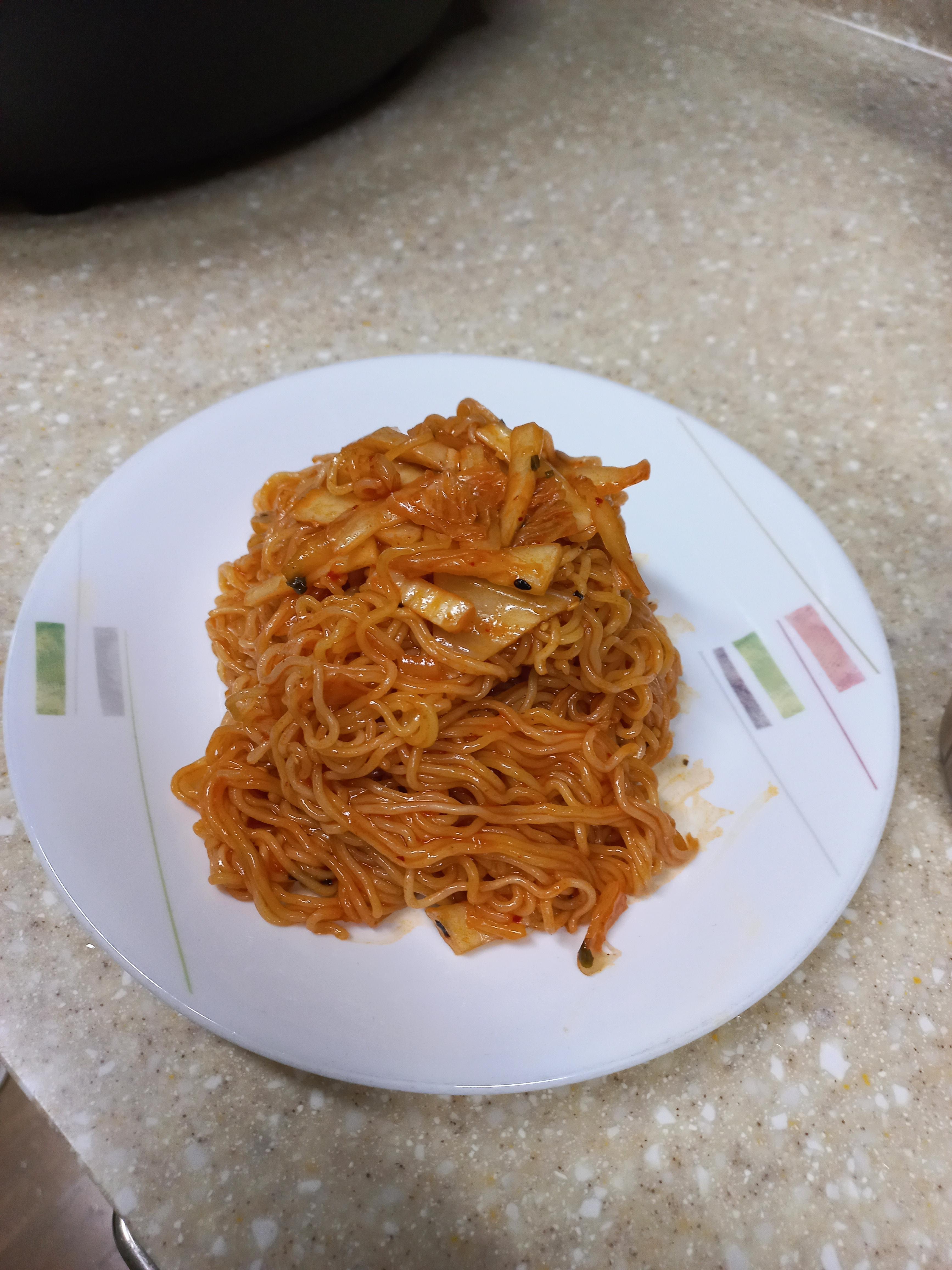 두 라면의 부족한 부분을 채워주는거 같아서 두개의 라면을 섞어서 만든게 아주 잘한일 같았어요.