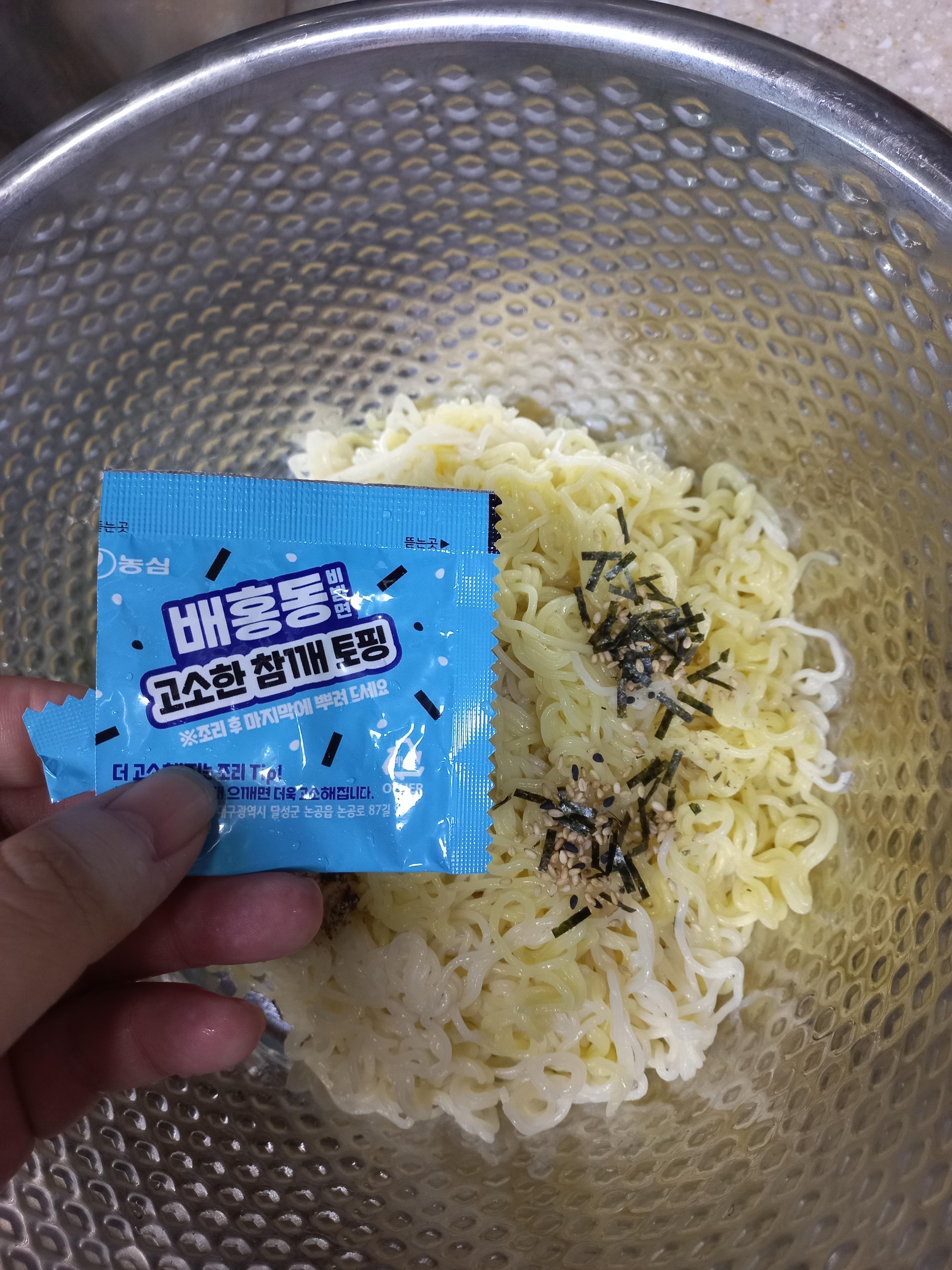 배홍동의 고명스프는 가루는 없고, 통깨와 김이 들어가 있습니다.