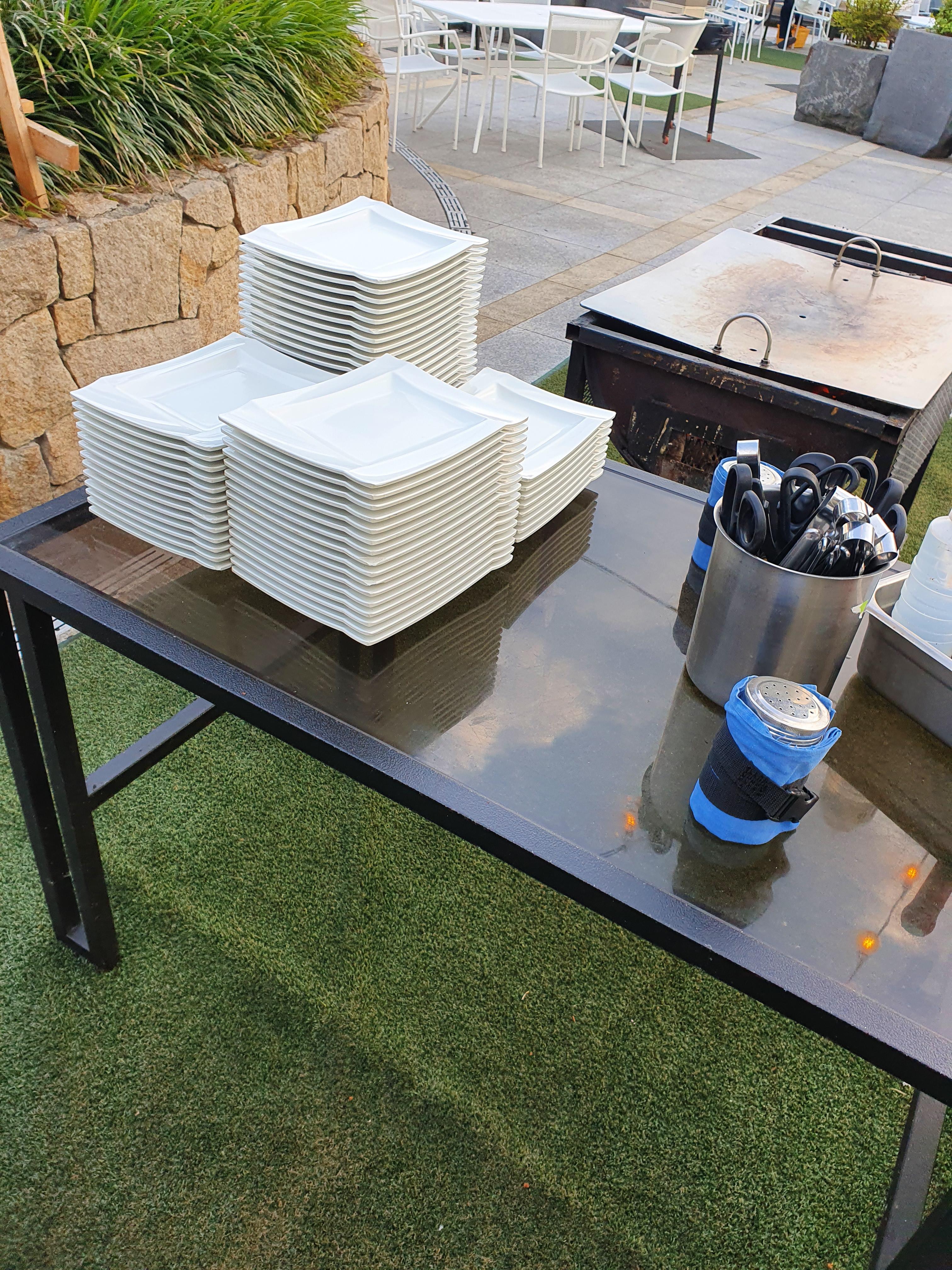 초벌구이 하는곳 바로 옆에 접시랑 집게 가위, 소금이 전부다 세팅이 되어 있습니다.