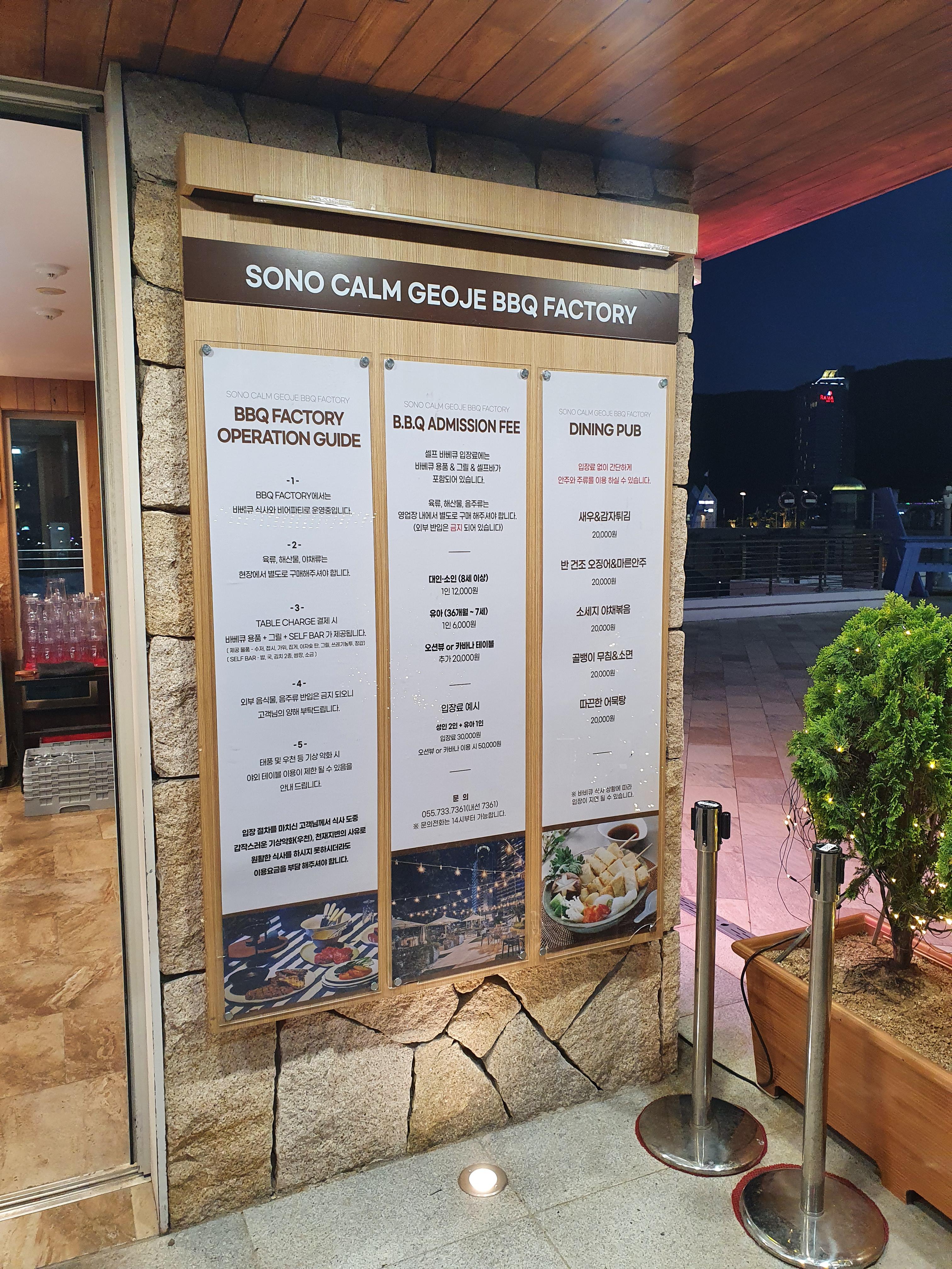 소노캄거제 바베큐 팩토리 입장료는 아래 사진을 참고하세요