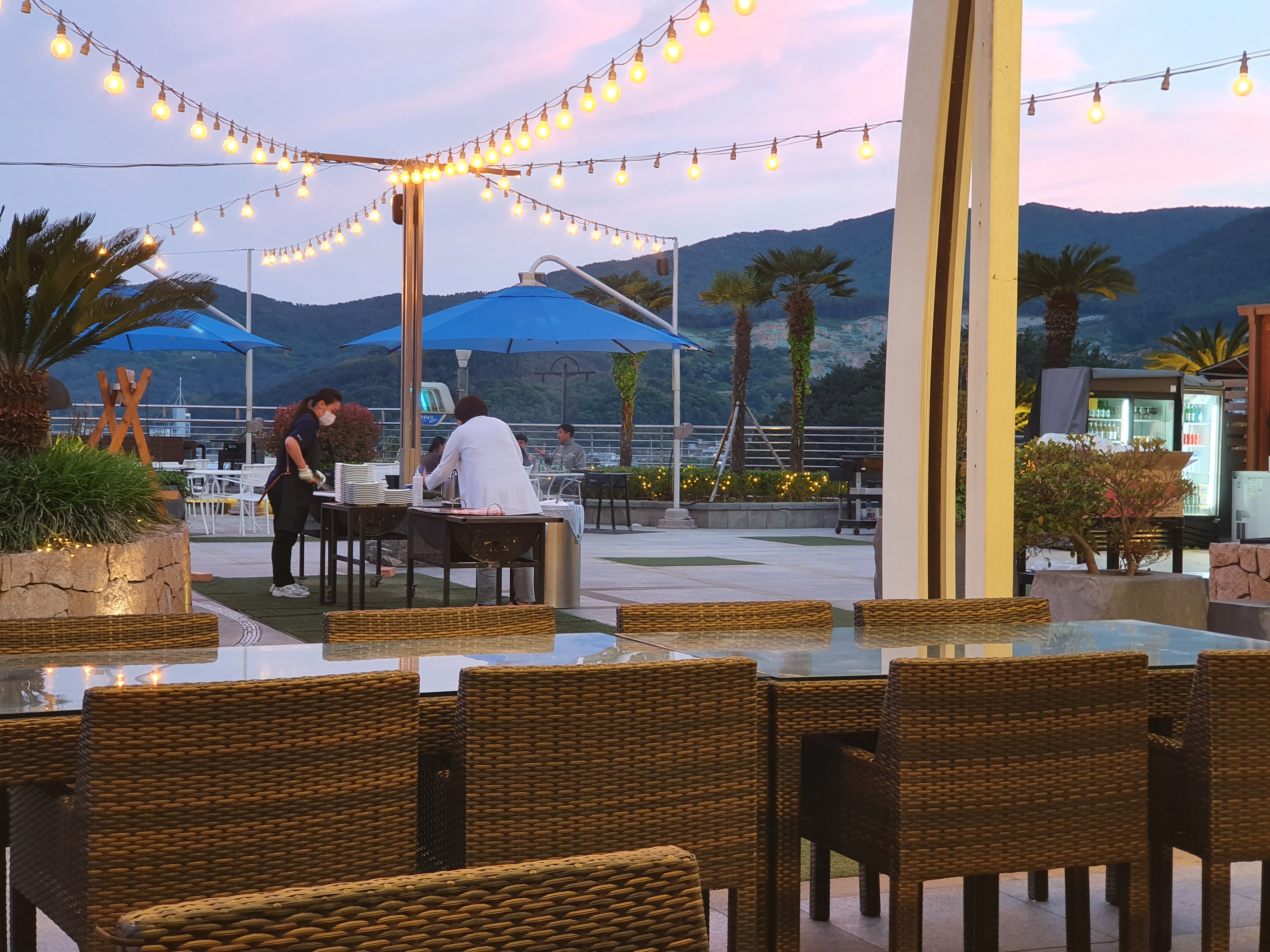 오늘은 첫날을 마무리 하는 소노캄 거제에게 야외바베큐 장에서 저녁을 먹으려 합니다.