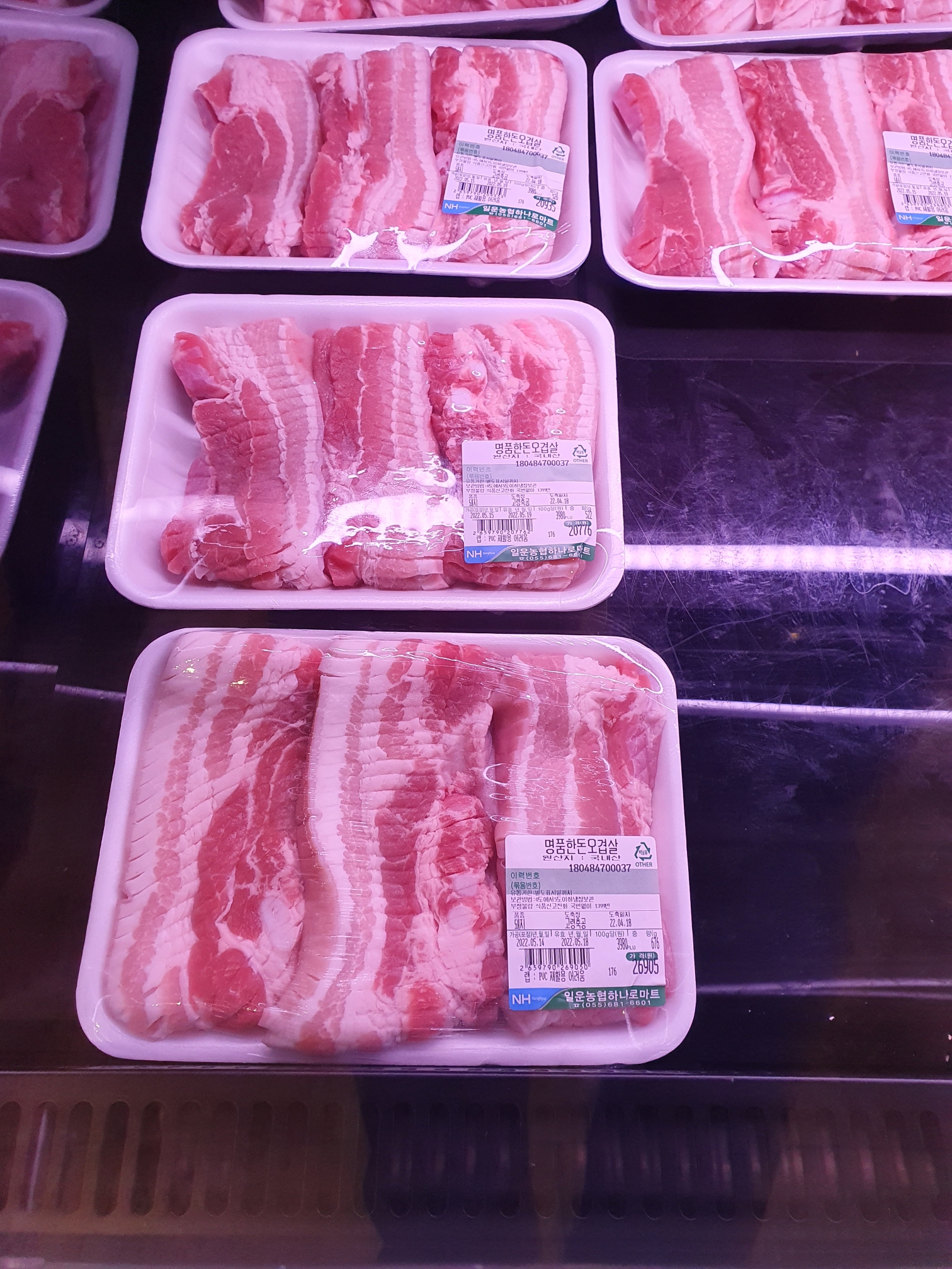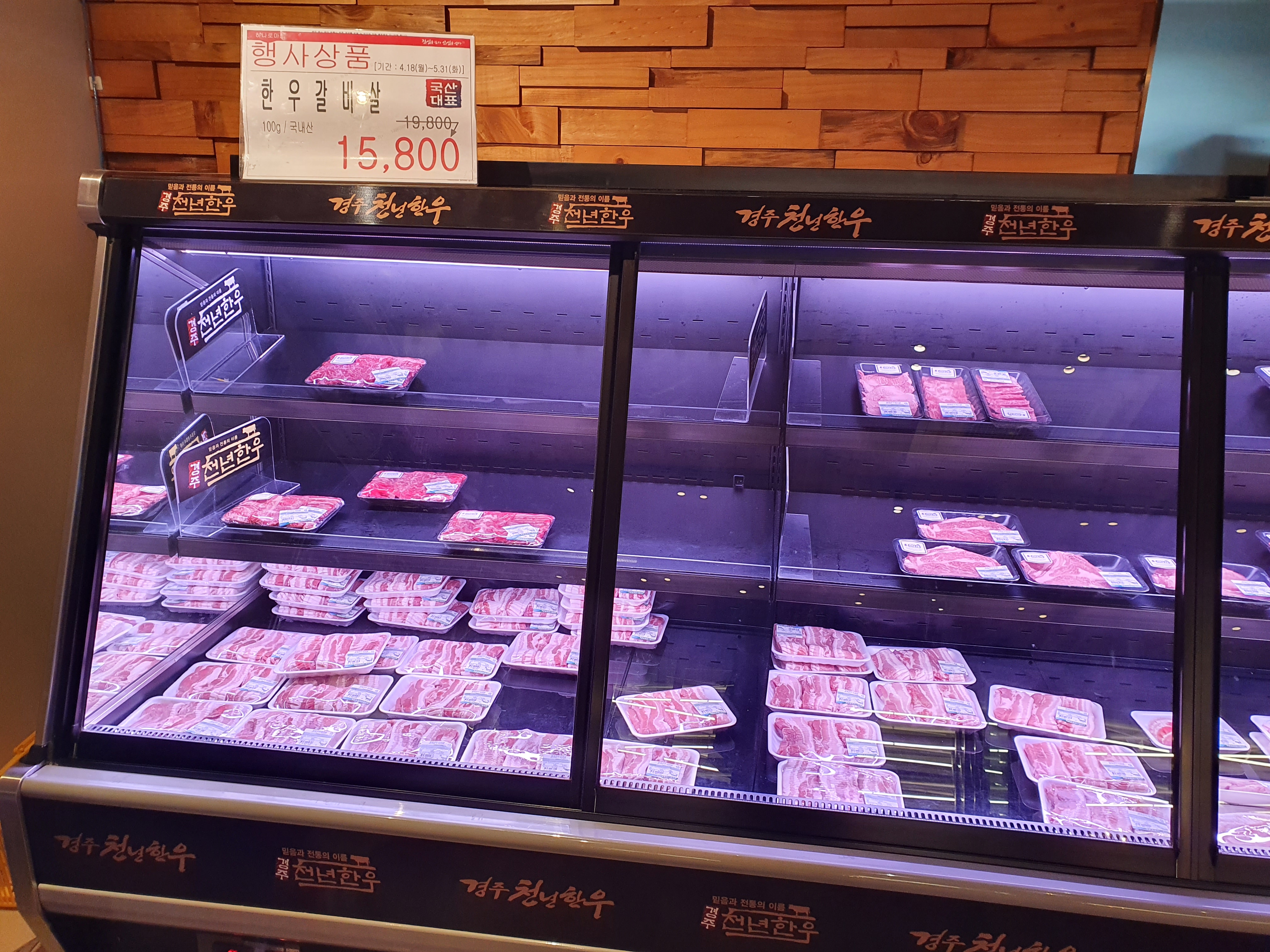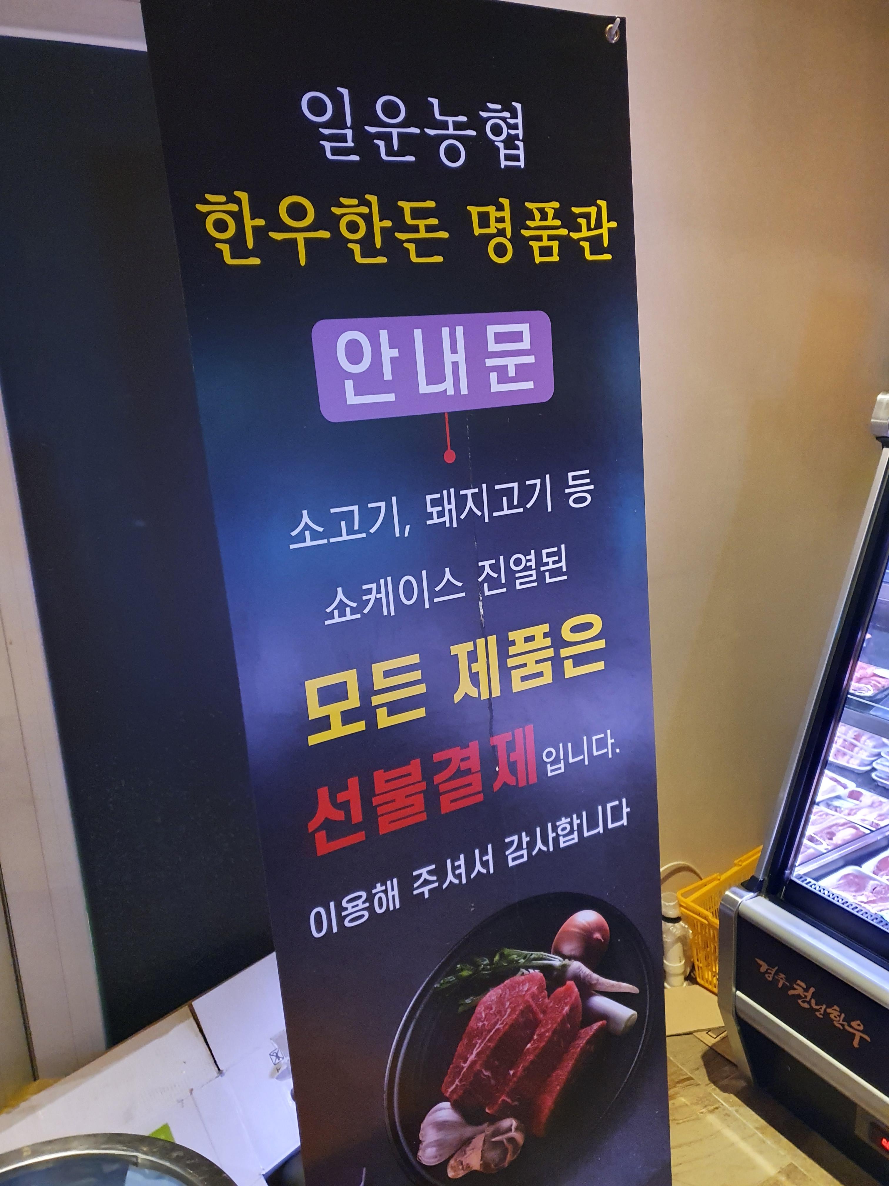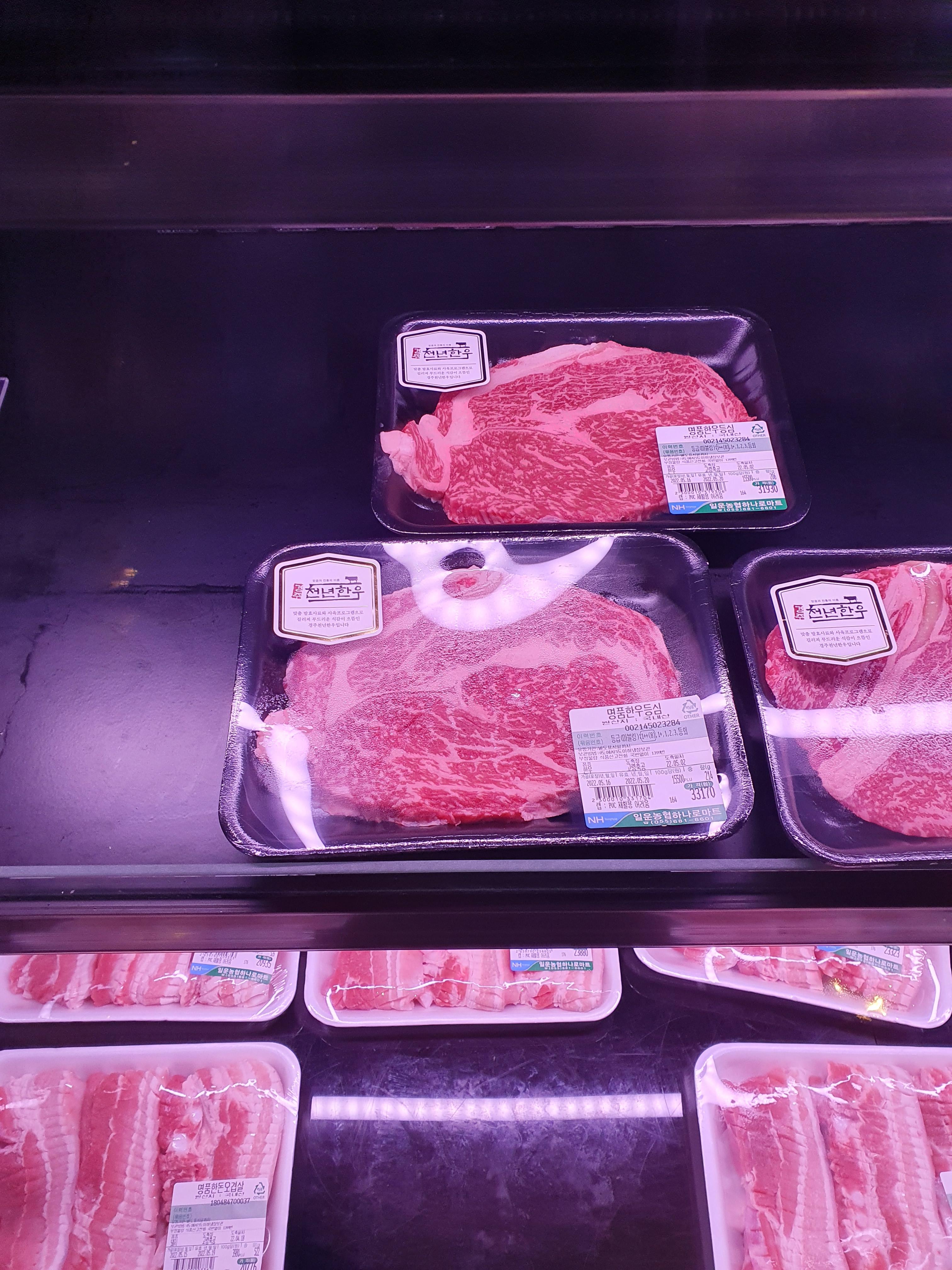 여기에 진열된 제품은 일운농협에서 나온 것 같습니다 저는 소고기가 비싸서 먹지 못했는데