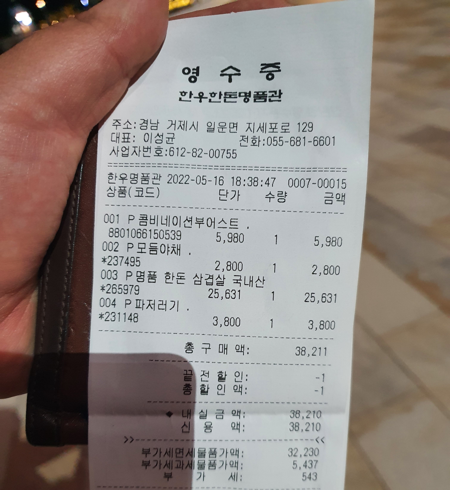 그리고 고기 가격은 38,210원