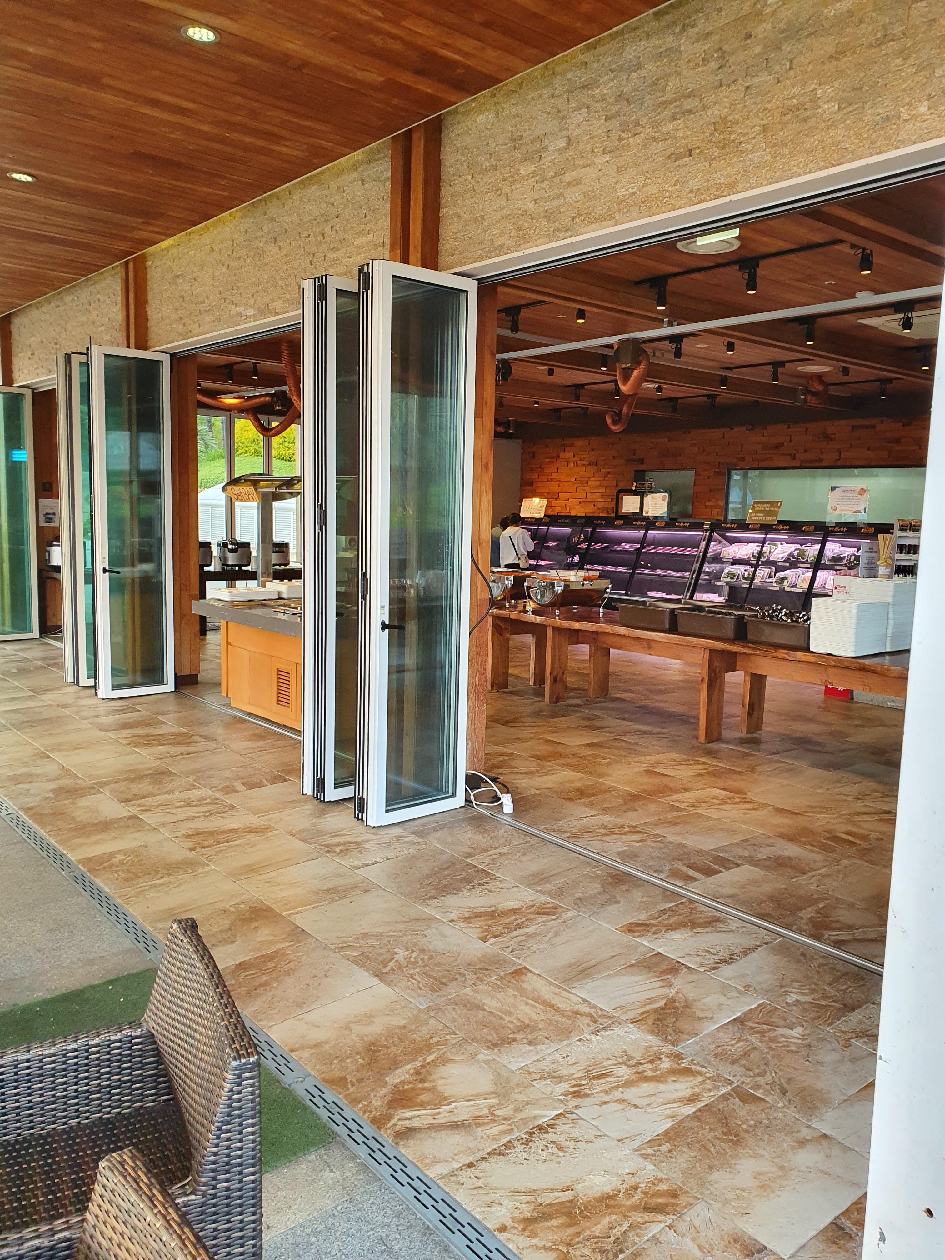 지하 1층으로 내려 가시고 산토리니 광장의 반대편으로 가시면 바베큐장이 보입니다.