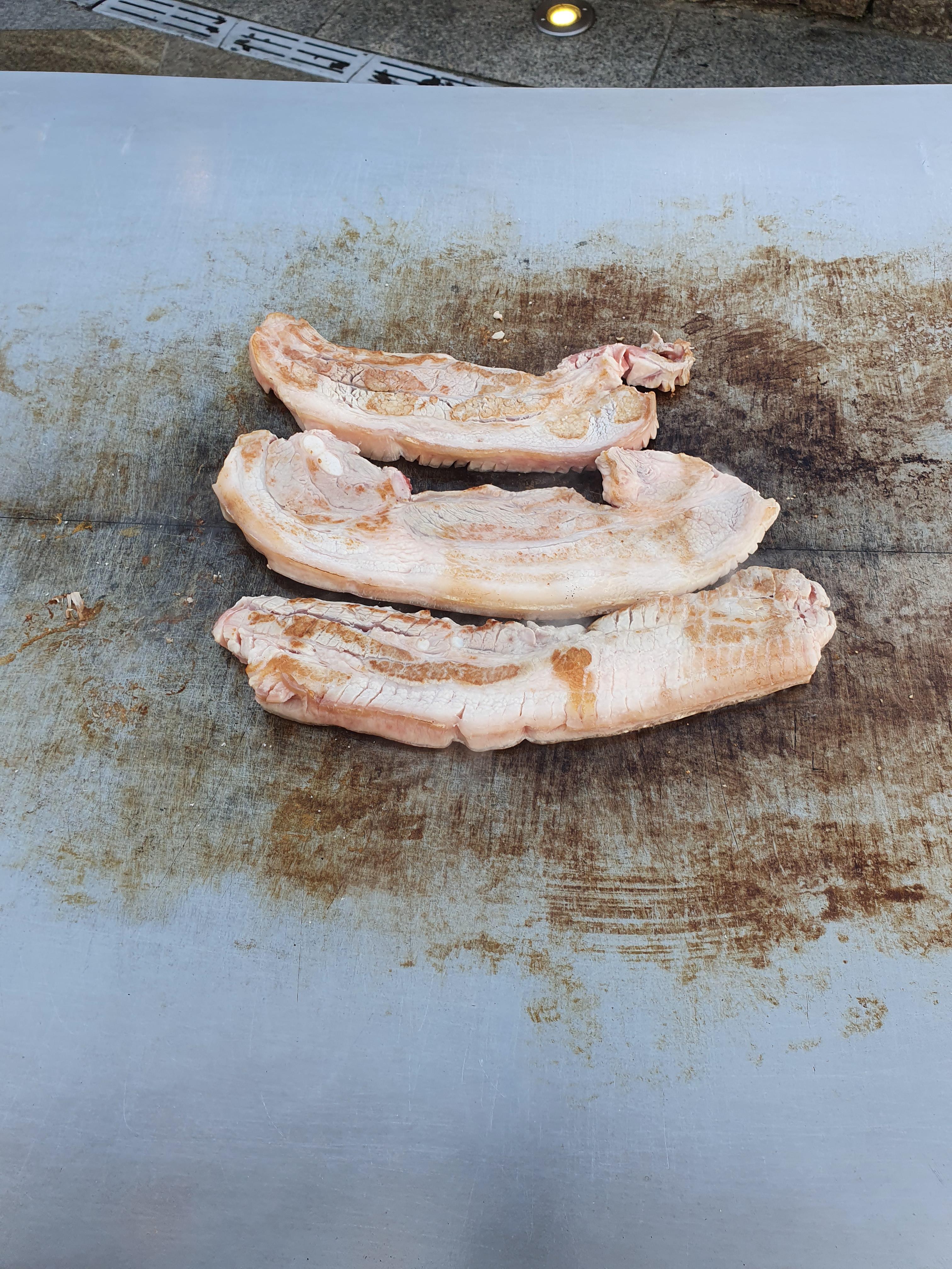 초벌구이 가든 오겹살 세 덩어리입니다.