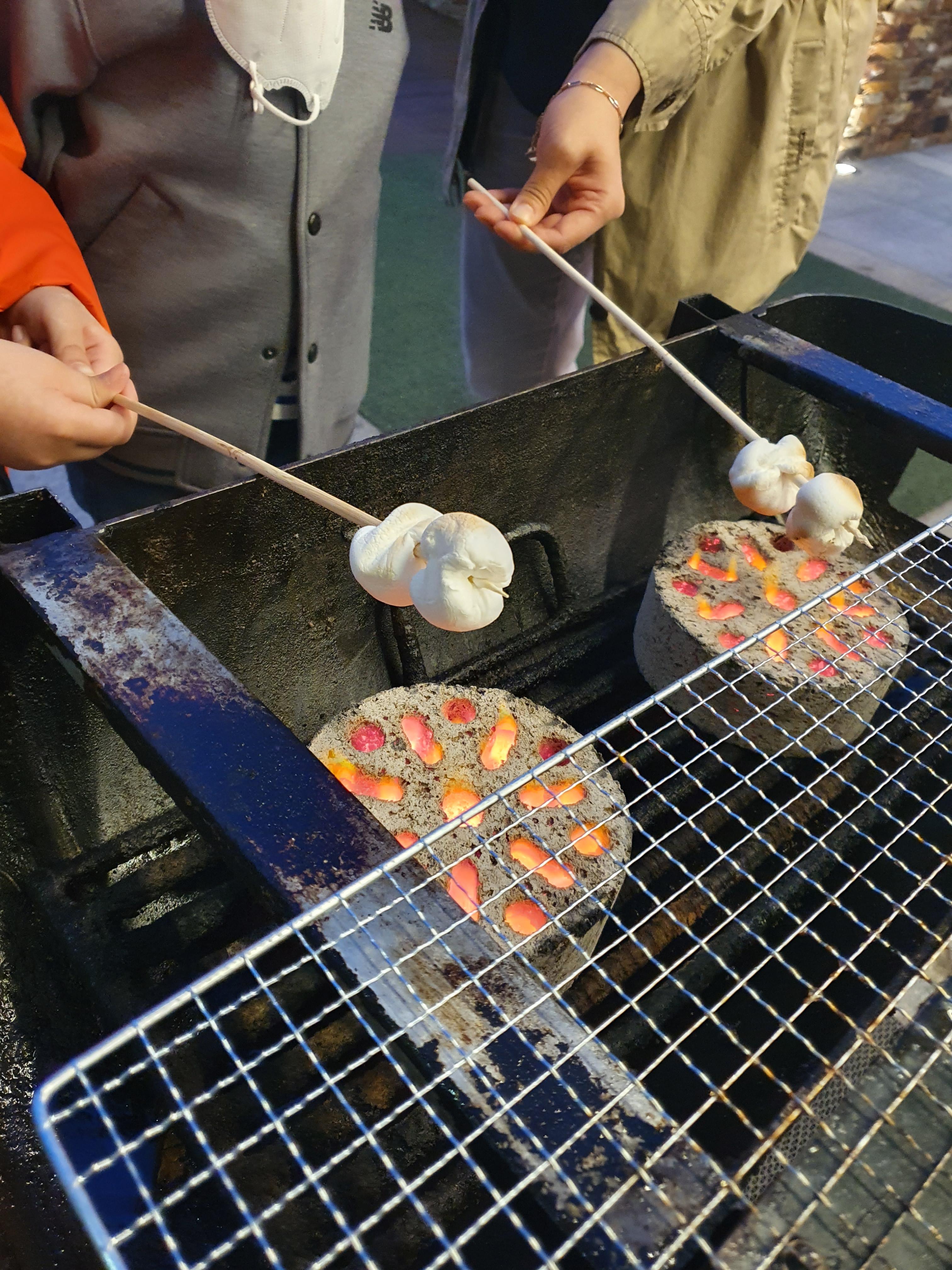 마시멜로우 한 봉지랑 긴 나무젓가락 두 개를 사서 마시멜로우 구워 먹기 추억을 쌓았습니다.