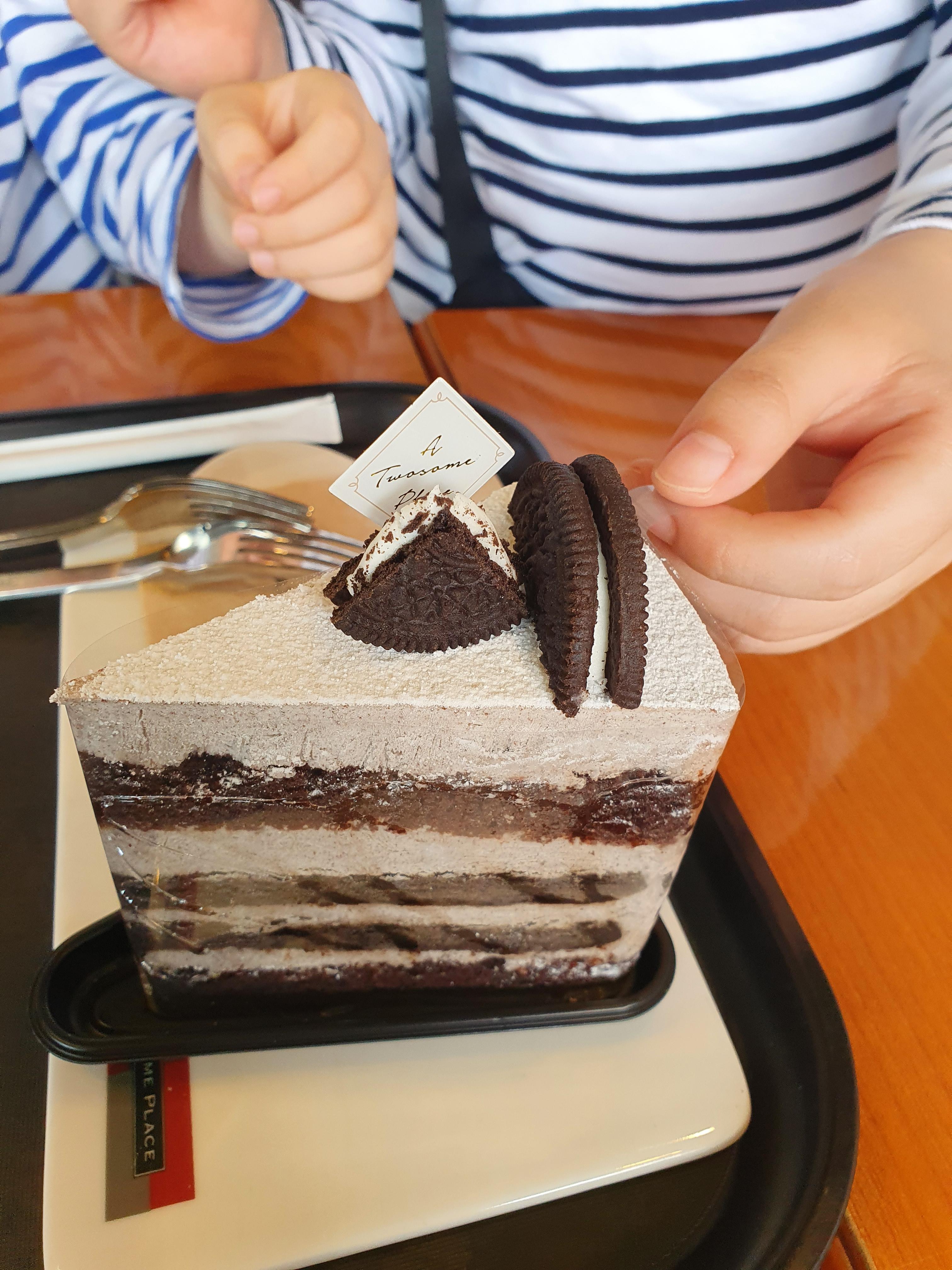 아이들 당을 충전을 위해서 쿠키앤크림 조각케익도 하나 샀습니다.