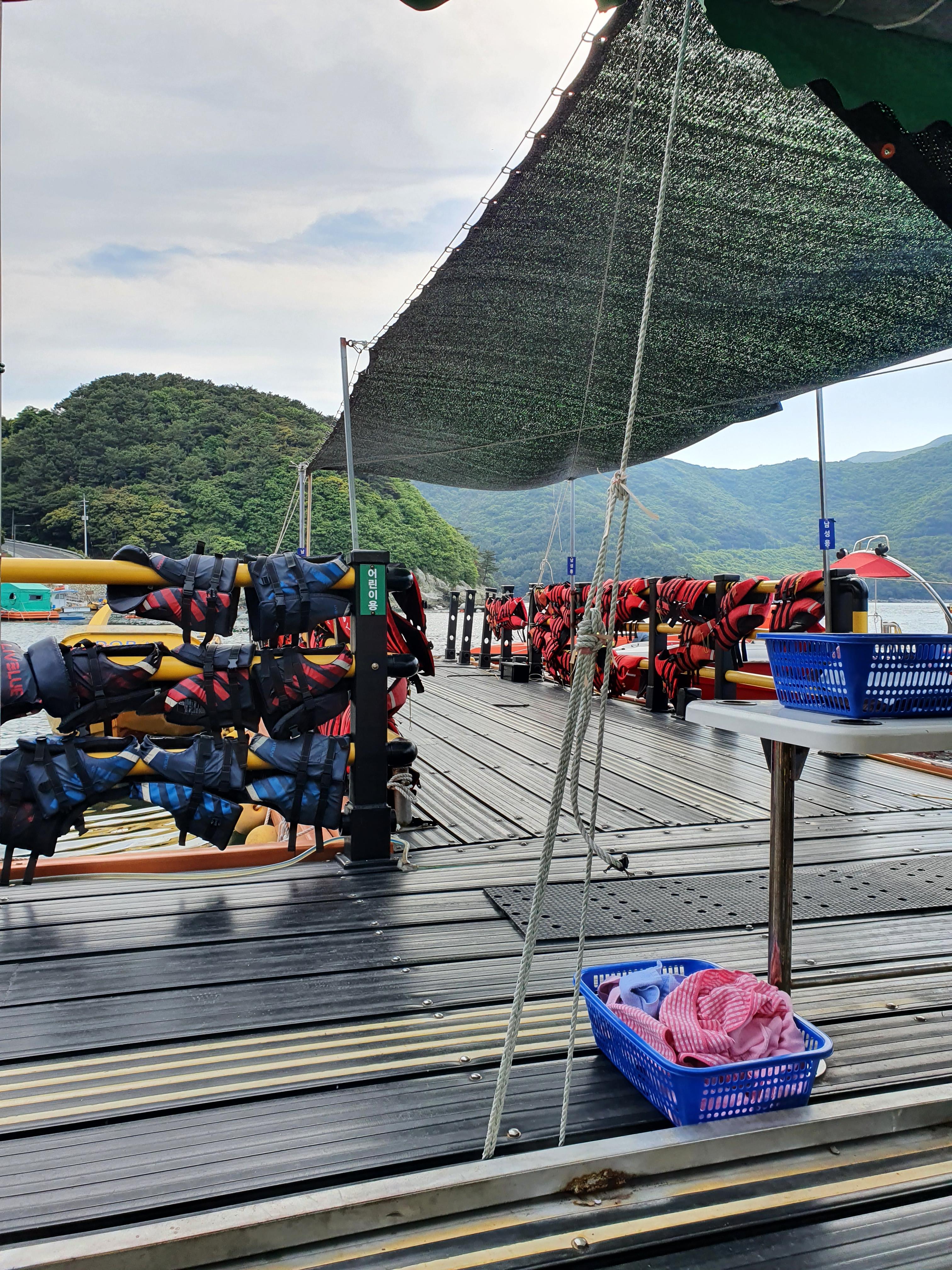 여기서 구명조끼를 알아서 착용을 하고~ 탑승하고 안전교육을 받았습니다.