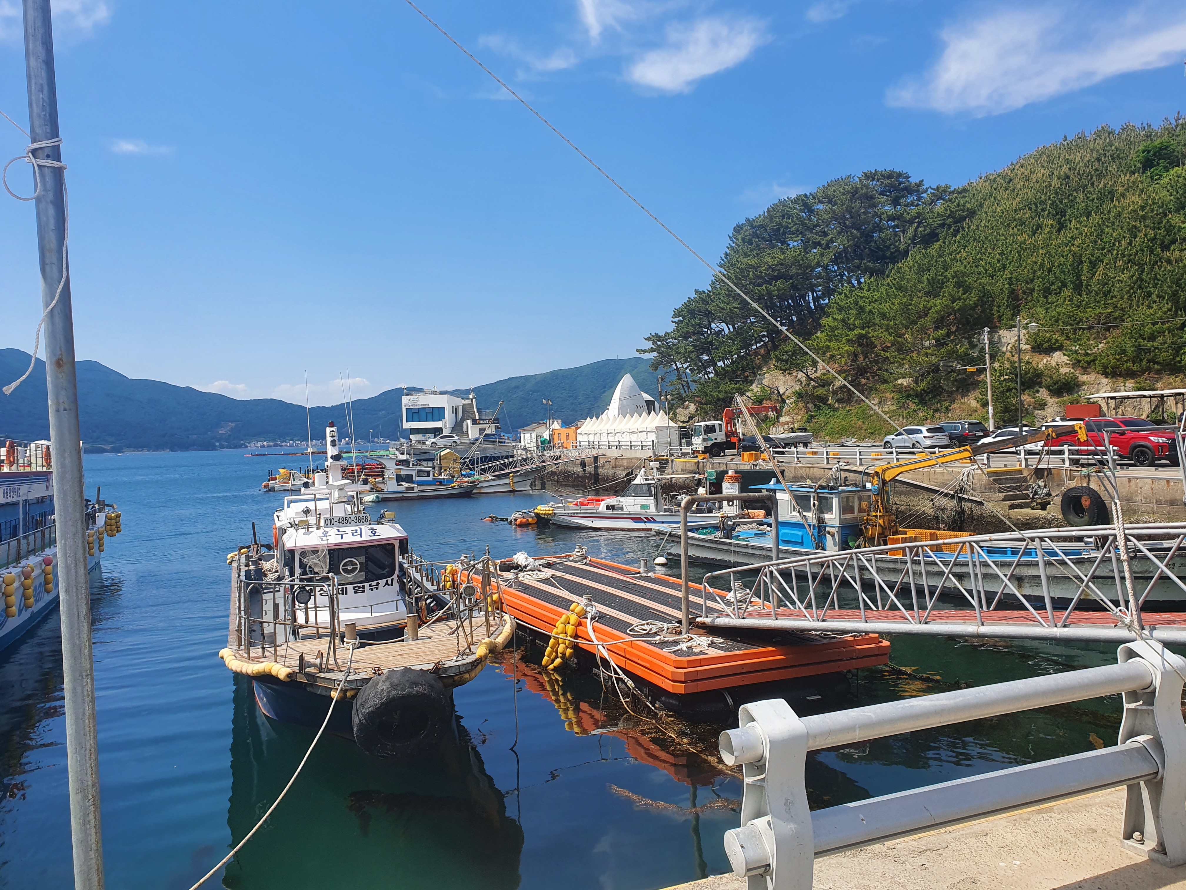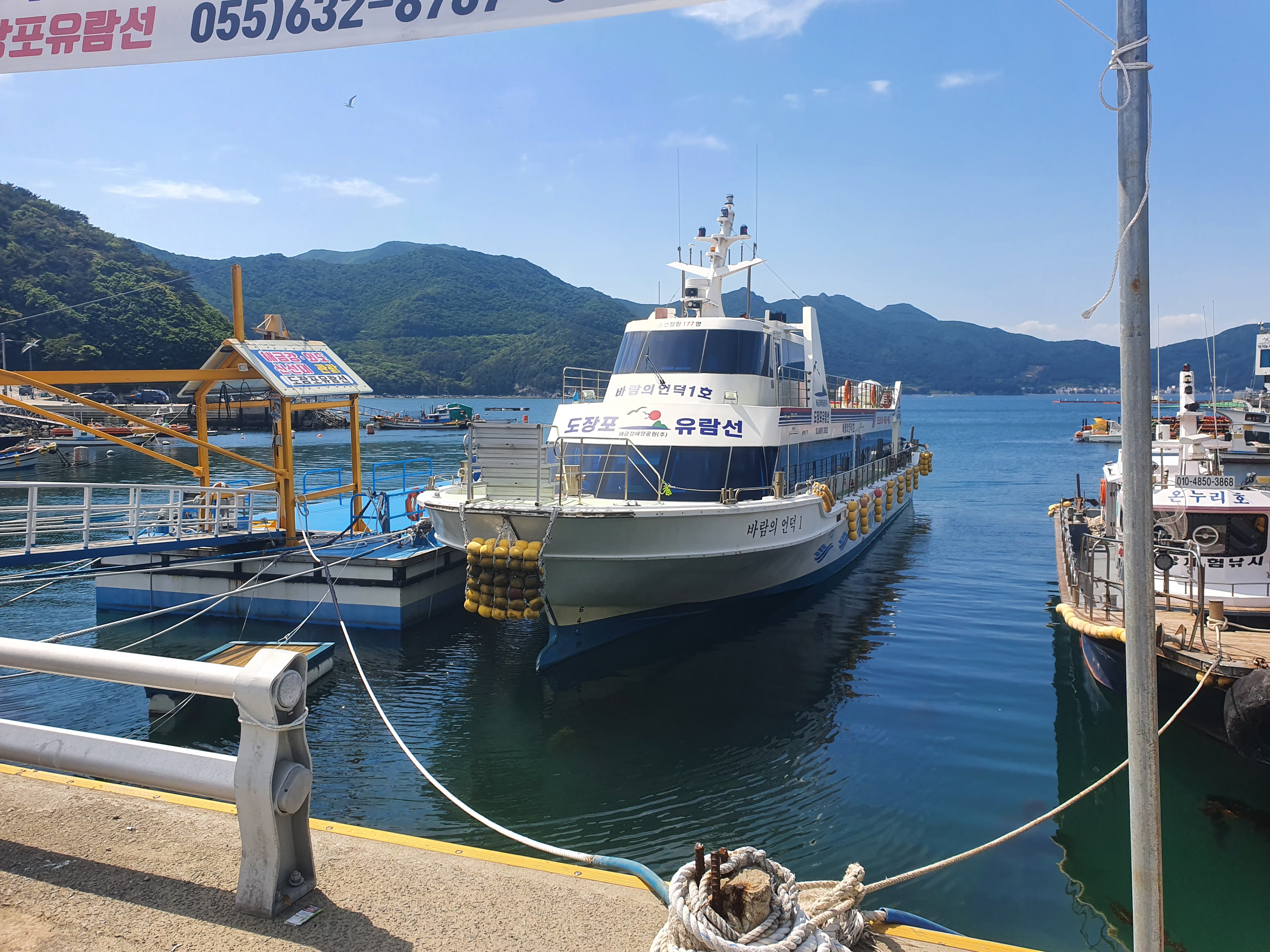 여기 바람의 언덕에서도 외도를 가는 유람선이 있습니다.