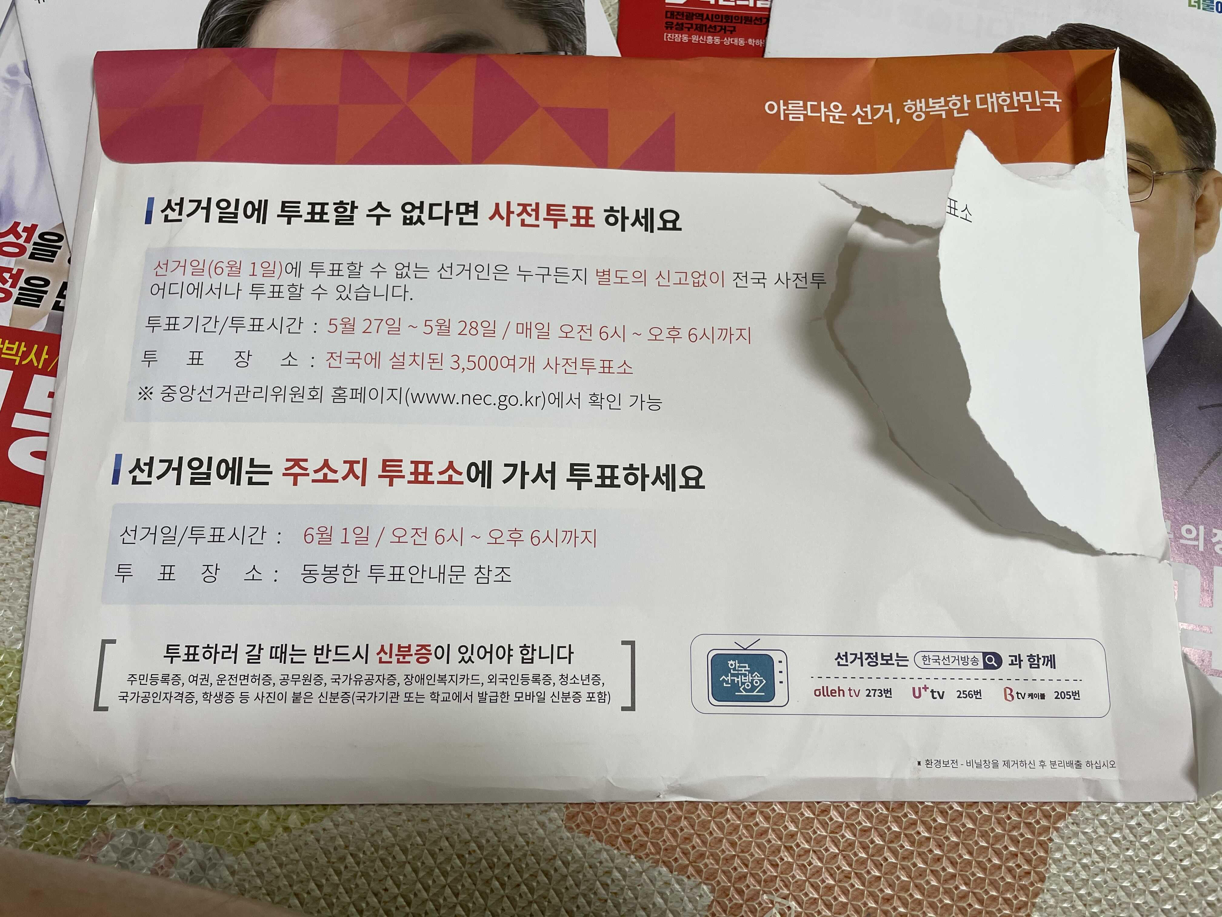 대전시 유성구 제8회 전국동시지방선거 공보 도착! 지방에 선출직 의원수가 너무 많음.. 선관위에서는 후보자명부를 보내주시길!