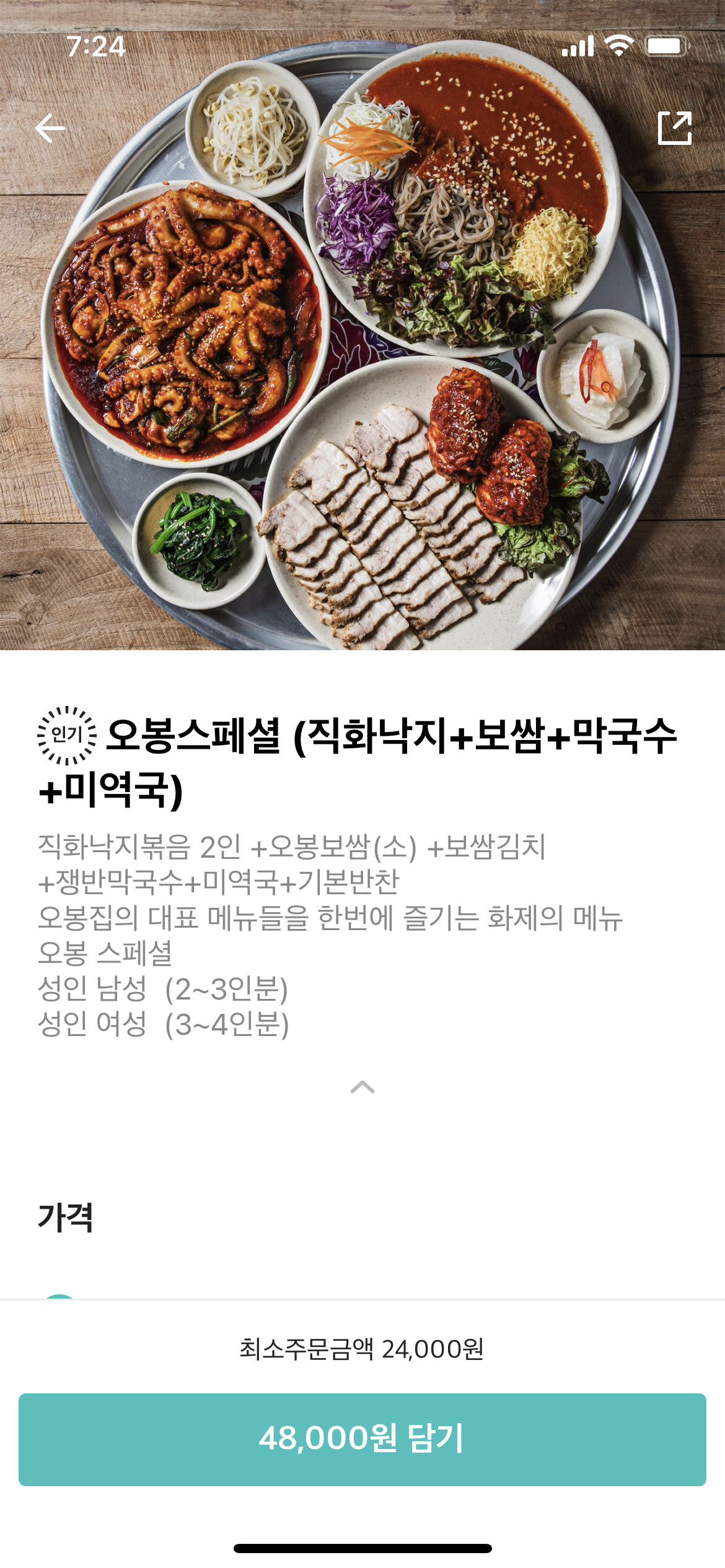 관저동 오봉집 오봉스페셜 메뉴가격은 48000원입니다.