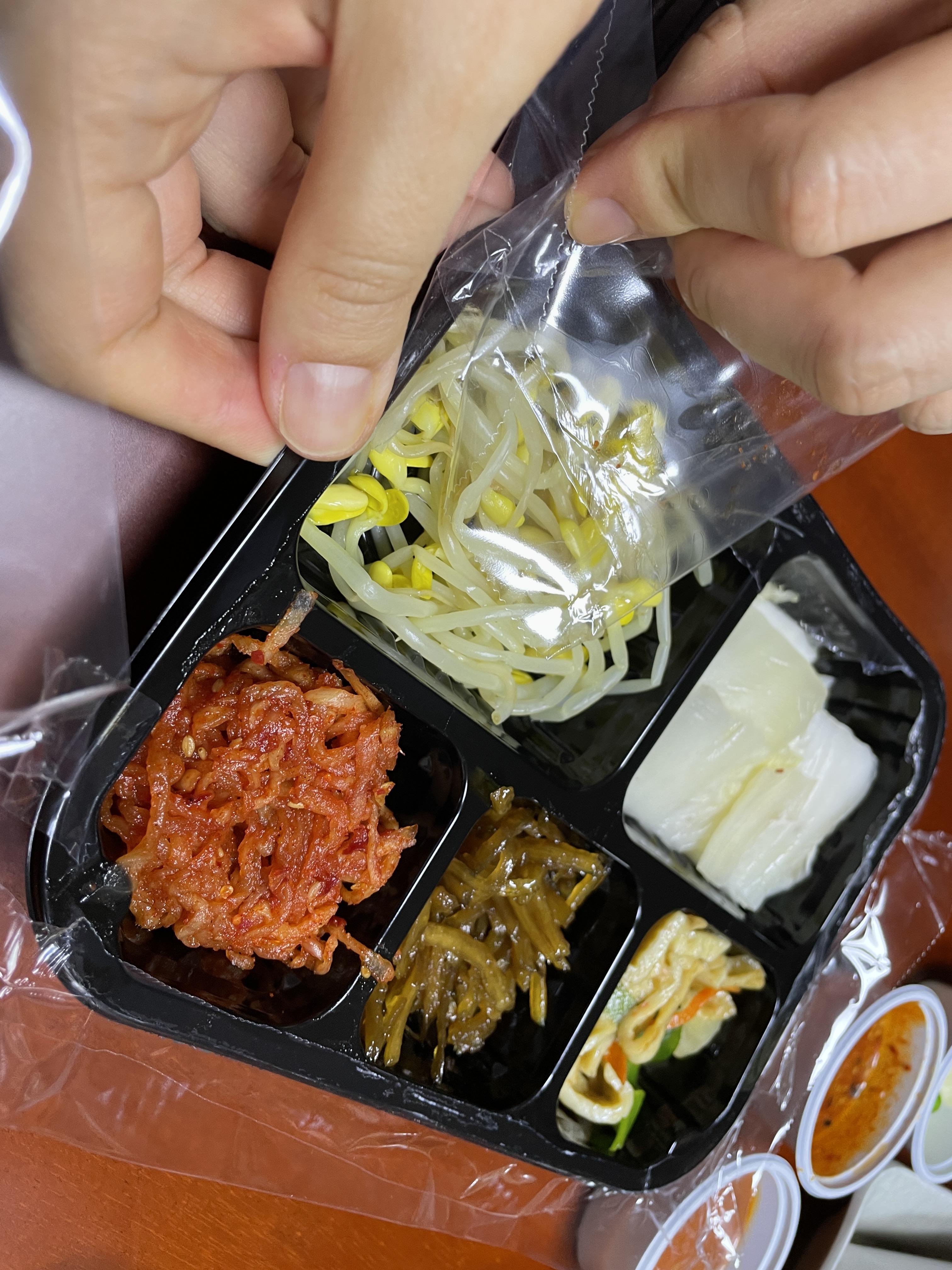 가운데 뚜껑이 열리지 않은것은 건새우 미역국입니다.