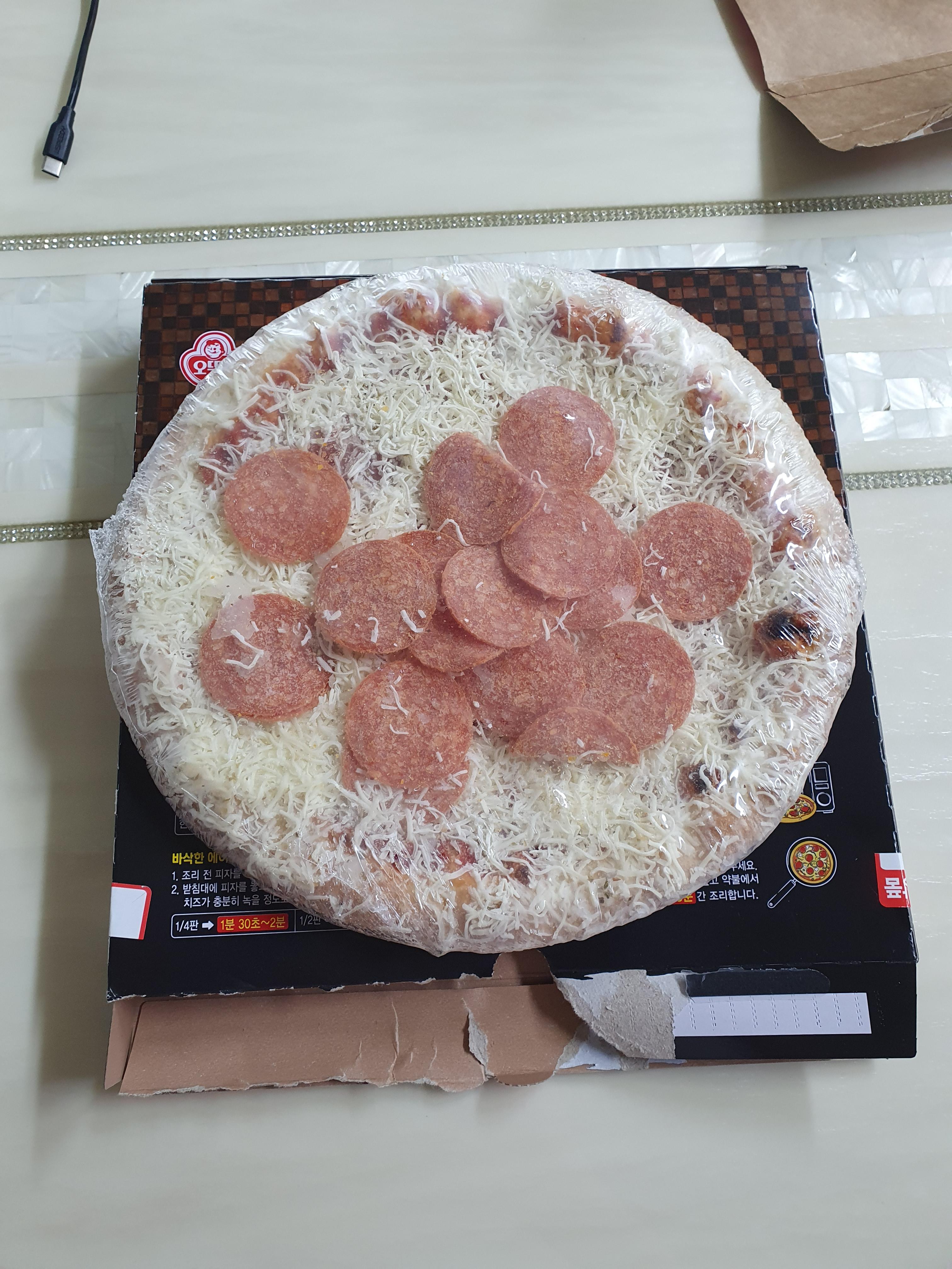 문제는 아직도 냉장고에 있는 오뚜기 페페로니 한 판이 남았는데...