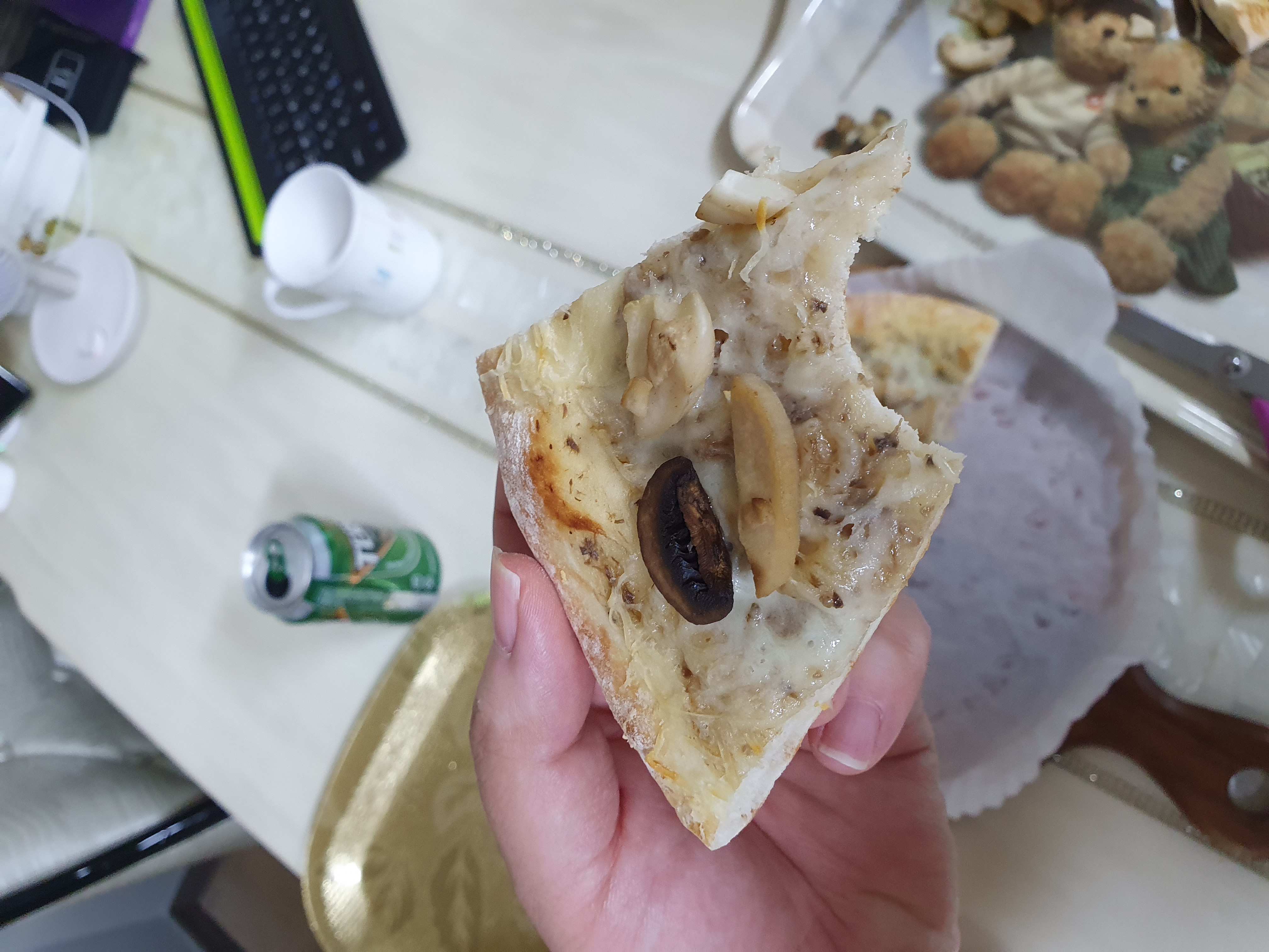 이후 해동된 버섯트러플 피자를 돌렸다.