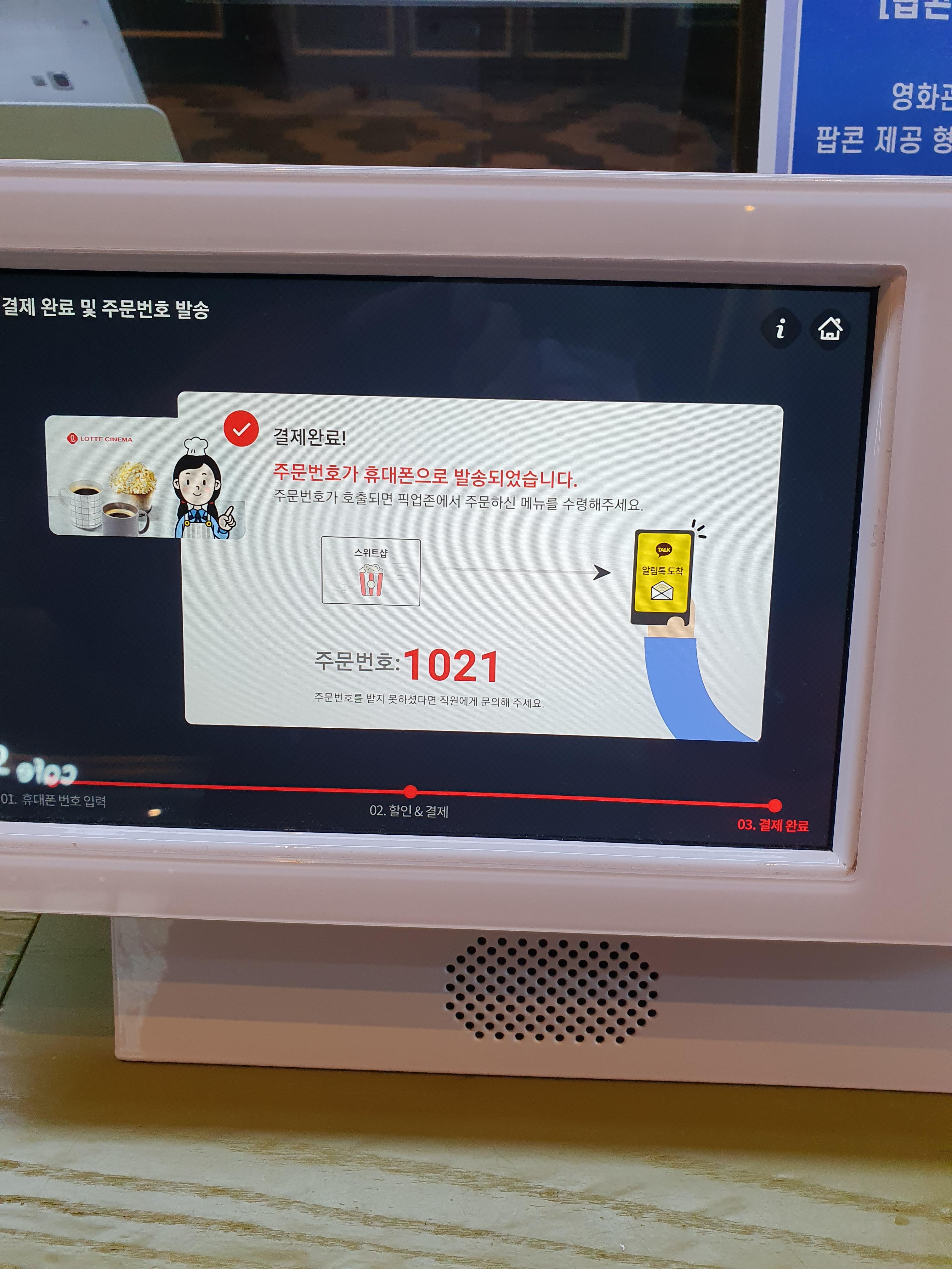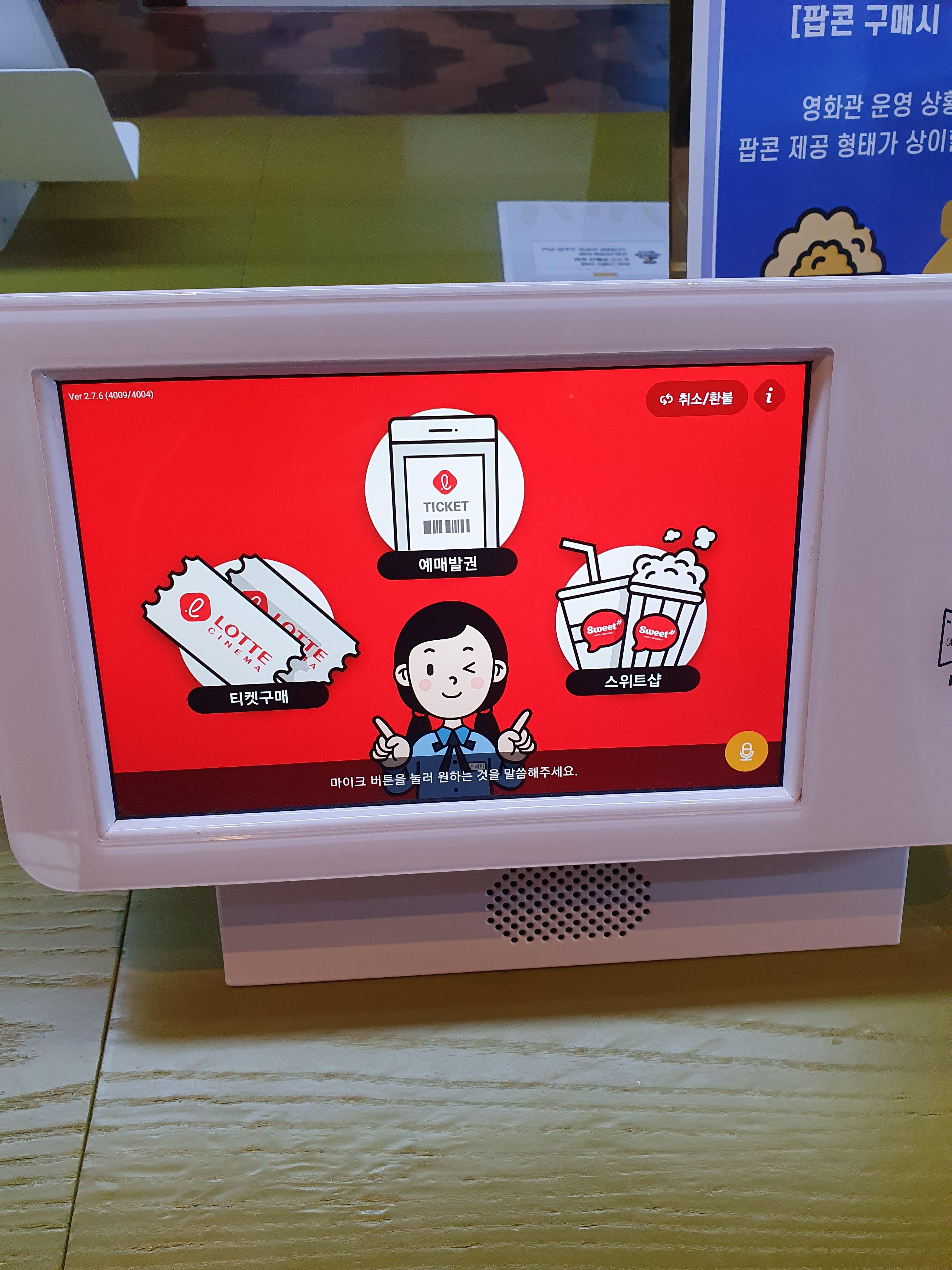 롯데시네마 무인키오스크는 요렇게 생겼어요