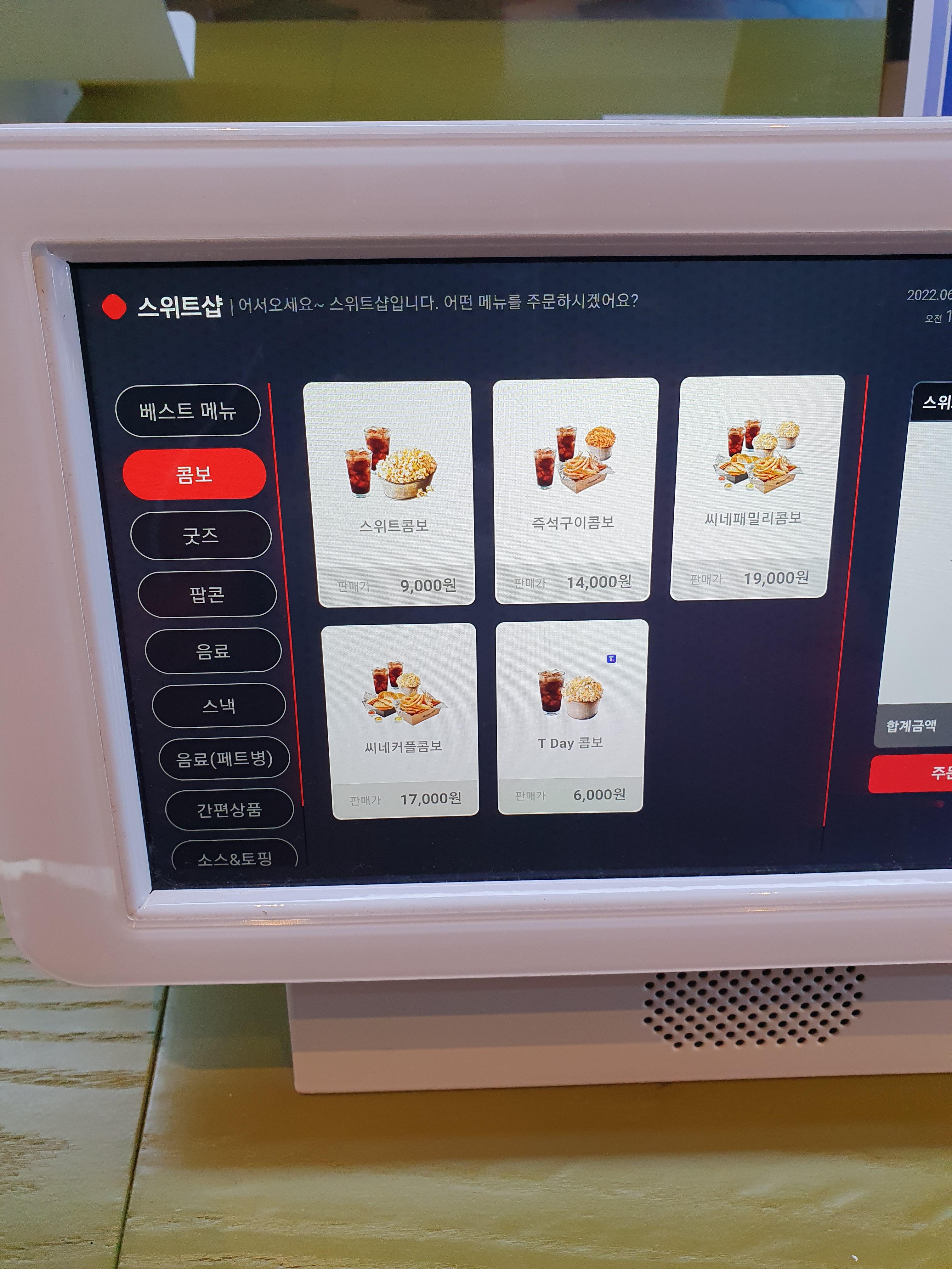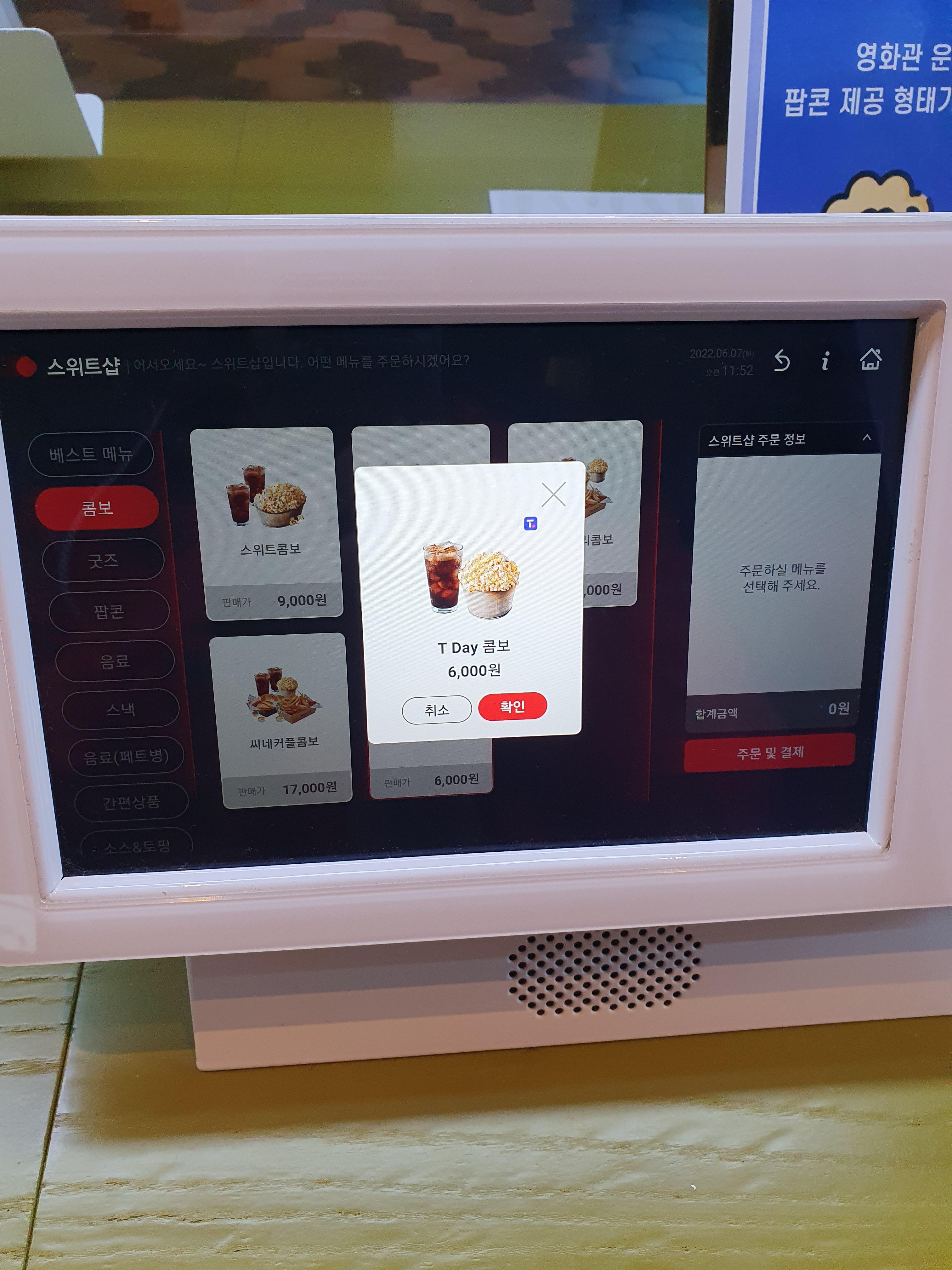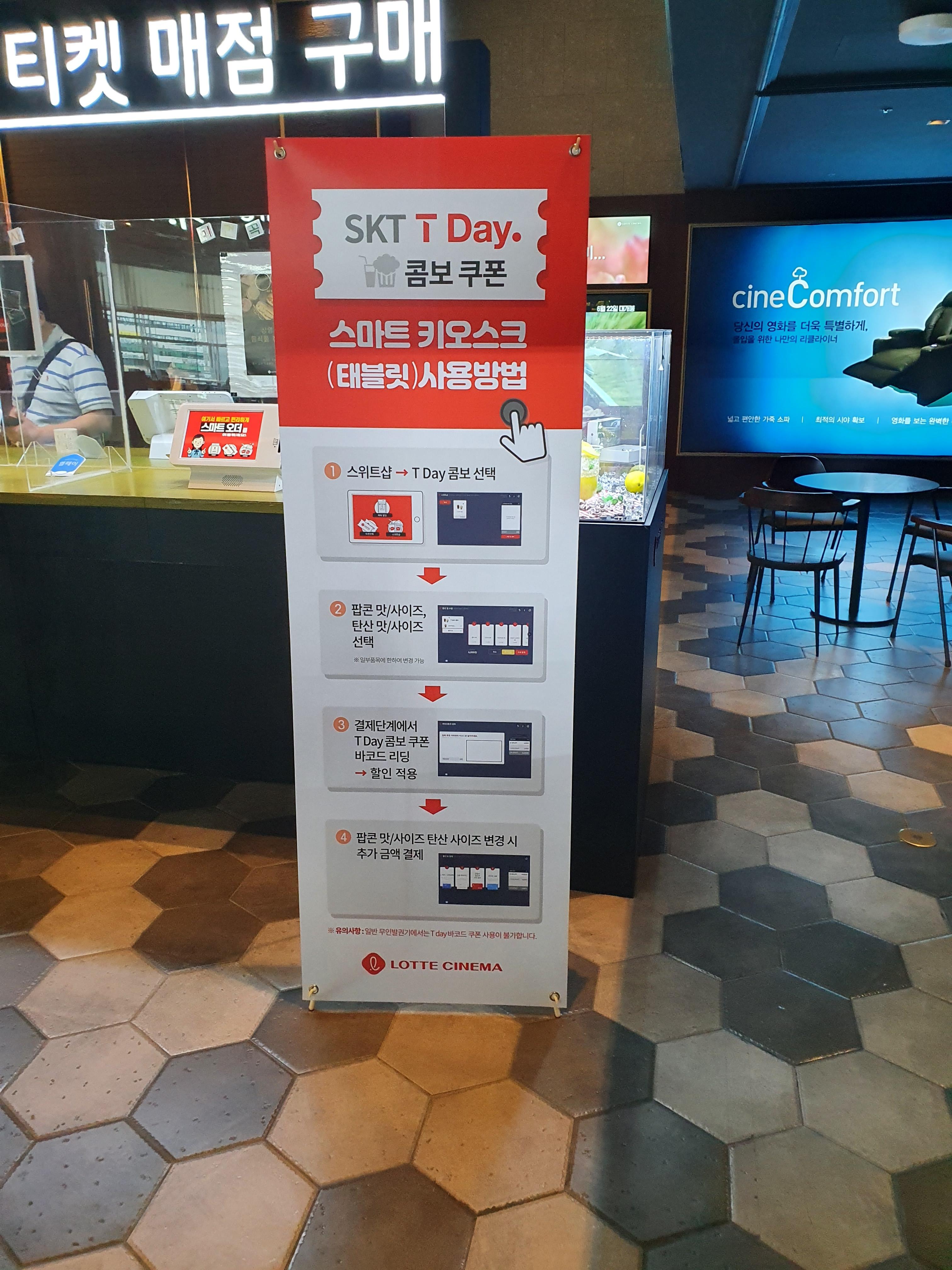 롯데시네마 무인키오스크에서 티데이 콤보 주문하는 방법