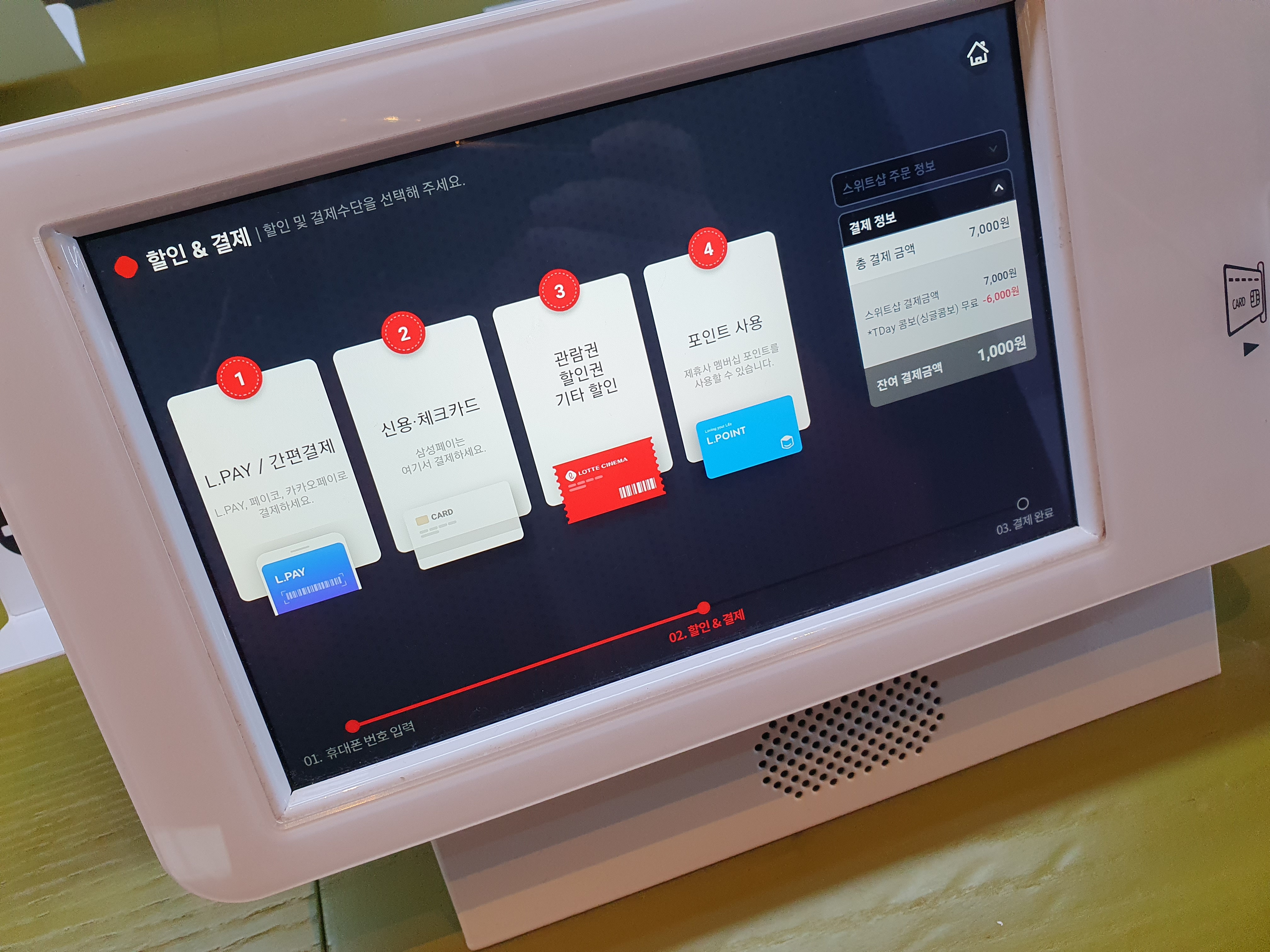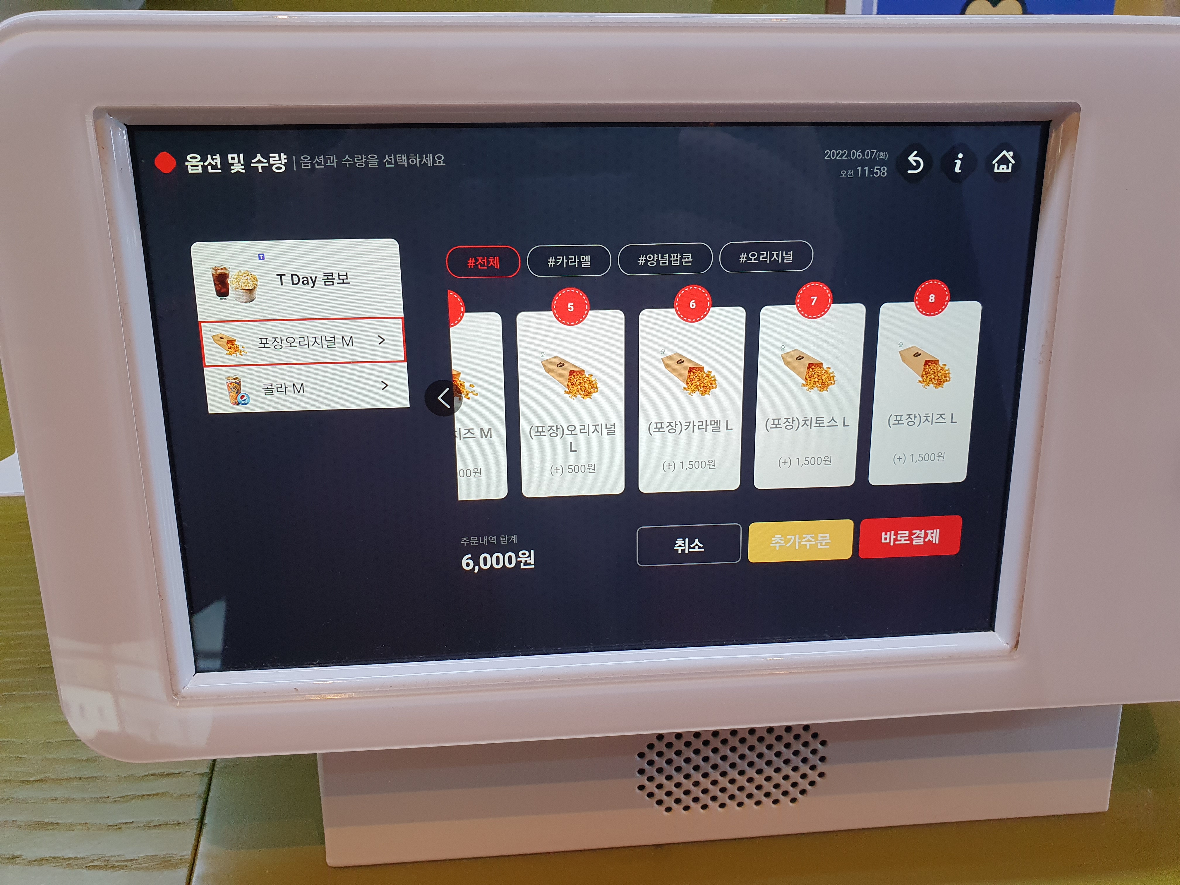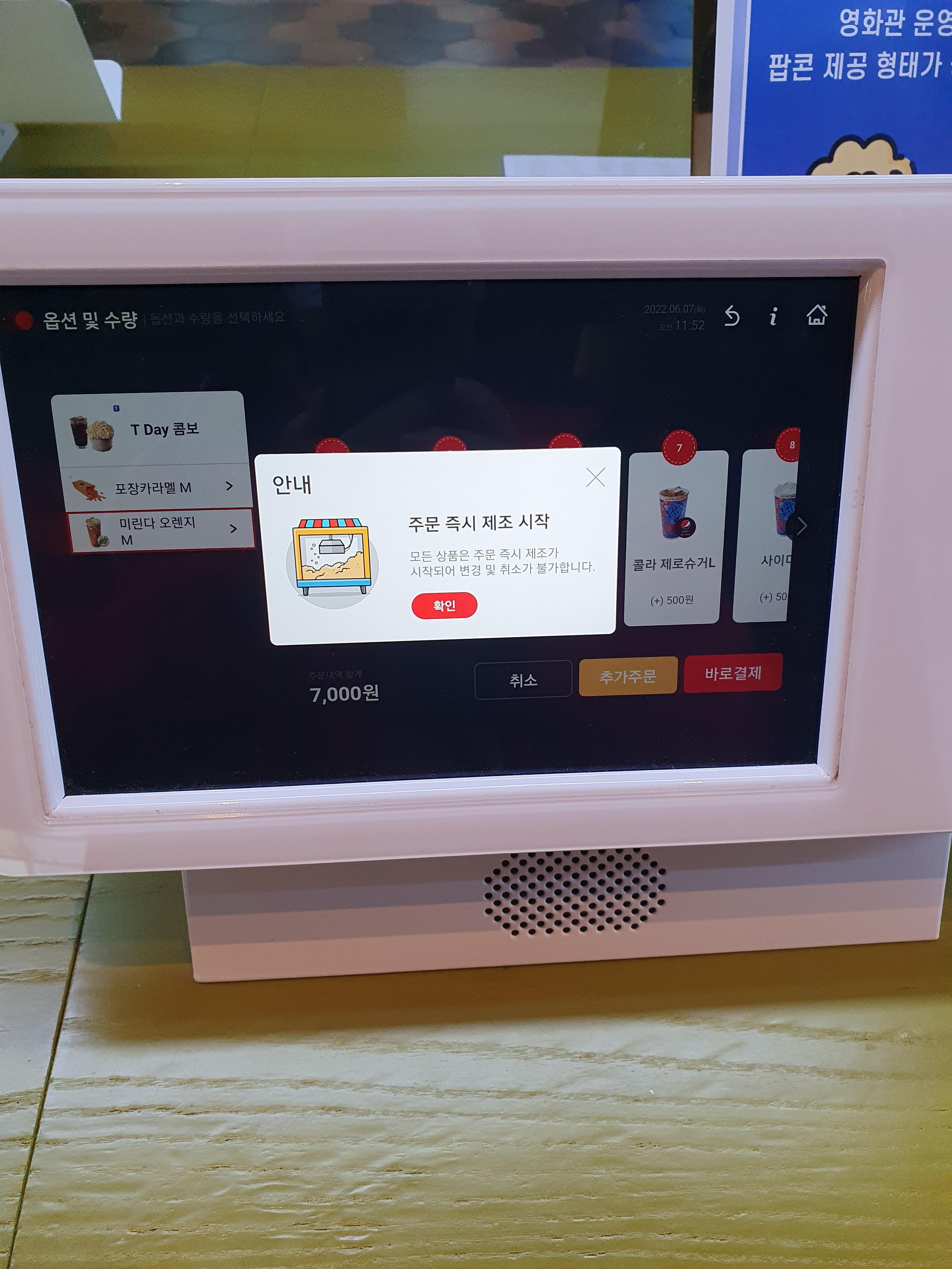 롯데시네마 무인키오스크에서 티데이 콤보 주문하는 방법