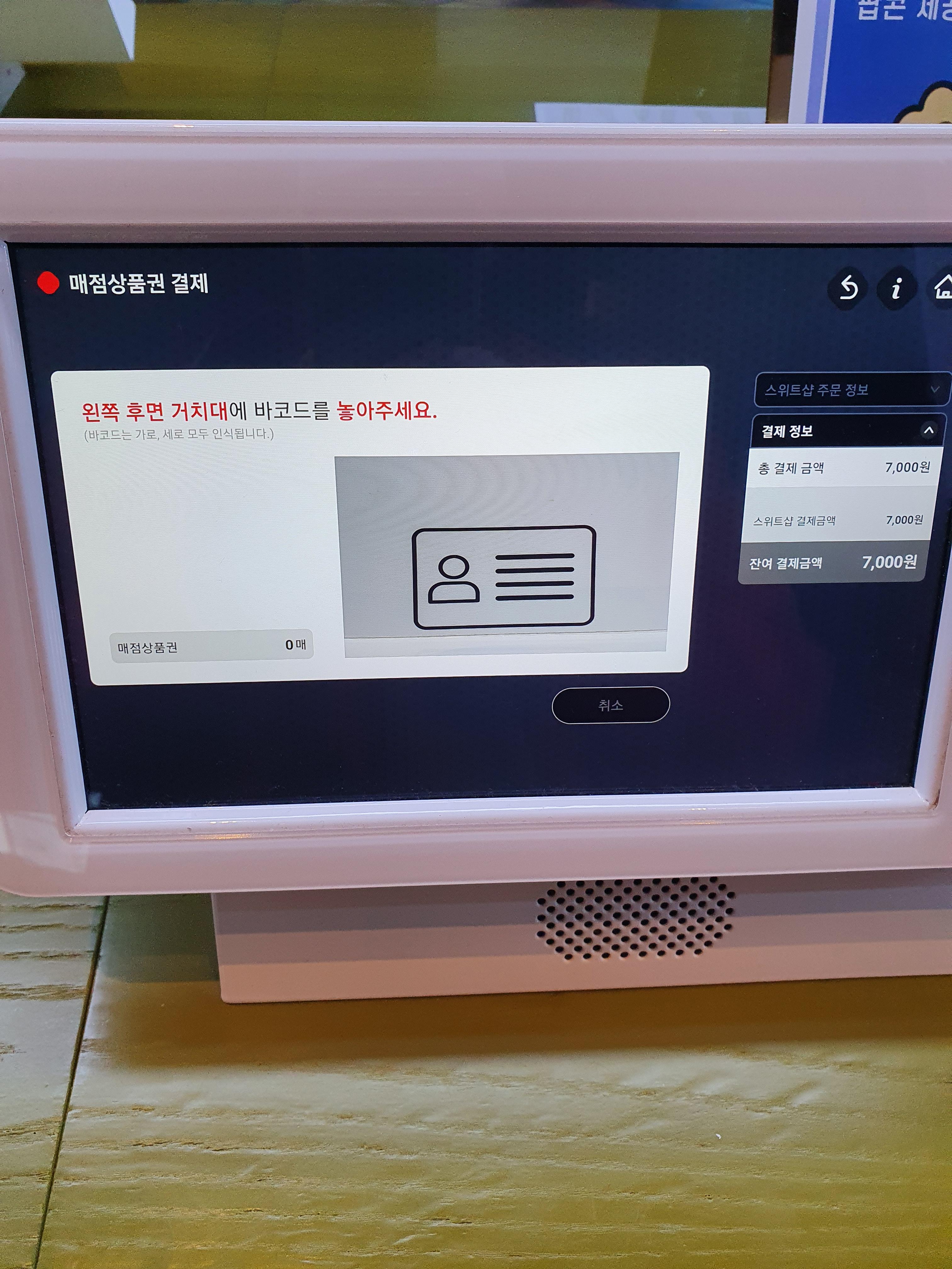 거기다가 휴대폰에서 아까 받은 t 데이 콤보 팝콘 바코드를 되면 됩니다