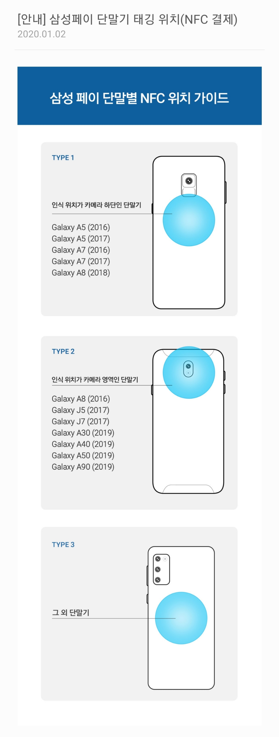 *아래 NFC모듈 위치 사진은 삼성전자에서 올라온 글을 첨부하였음을 밝힙니다.