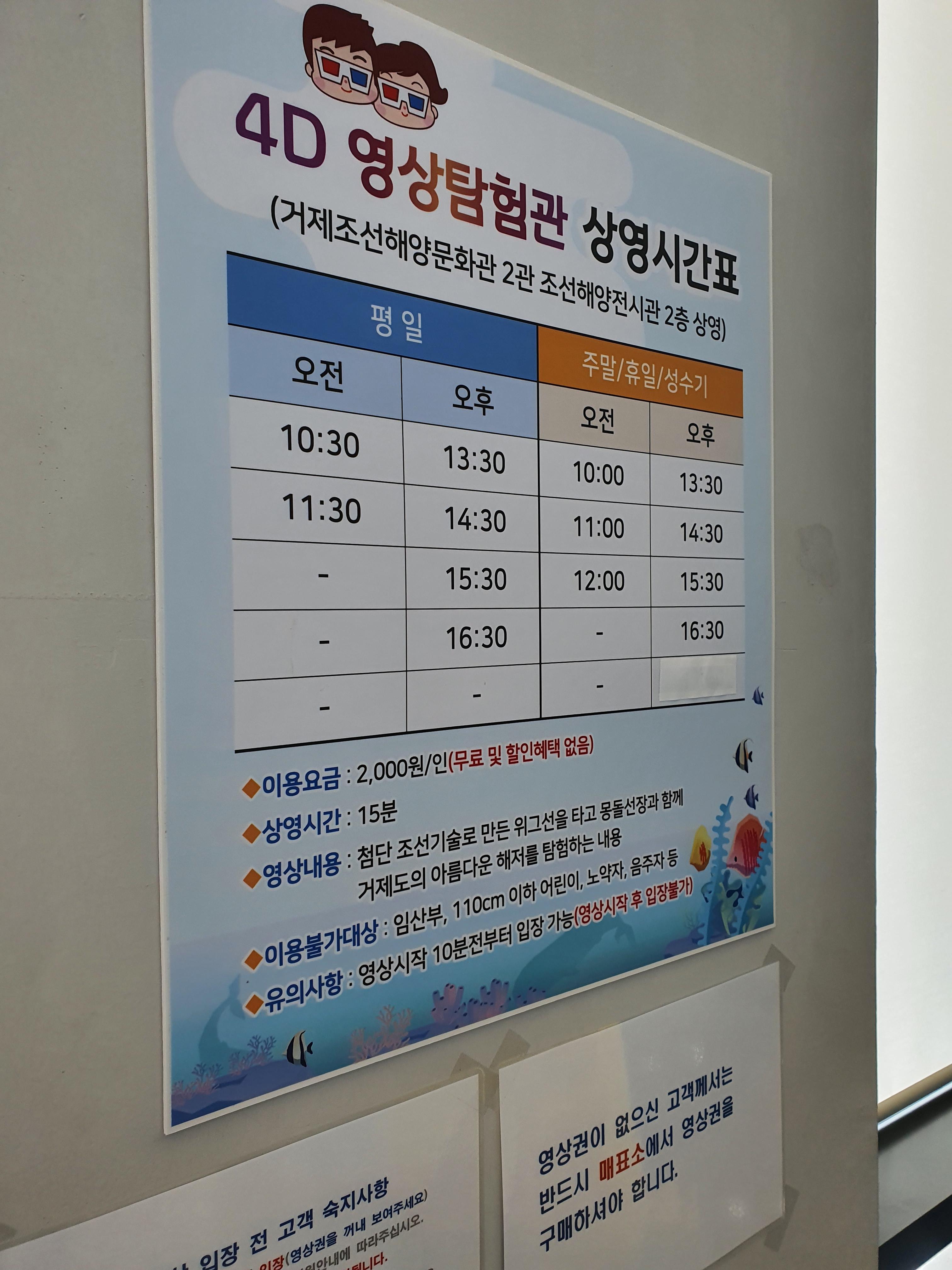 영상은 3d화면에 의자까지 들썩거리고, 바람도 쉬쉬 하면서 나오는데.. 생각보다 이거 보길 잘했구나 하는 생각이 들었습니다. 영상내용은 거제 바다속 여행을 만화로 만든 영상이라고 생각하시면 됩니다.
