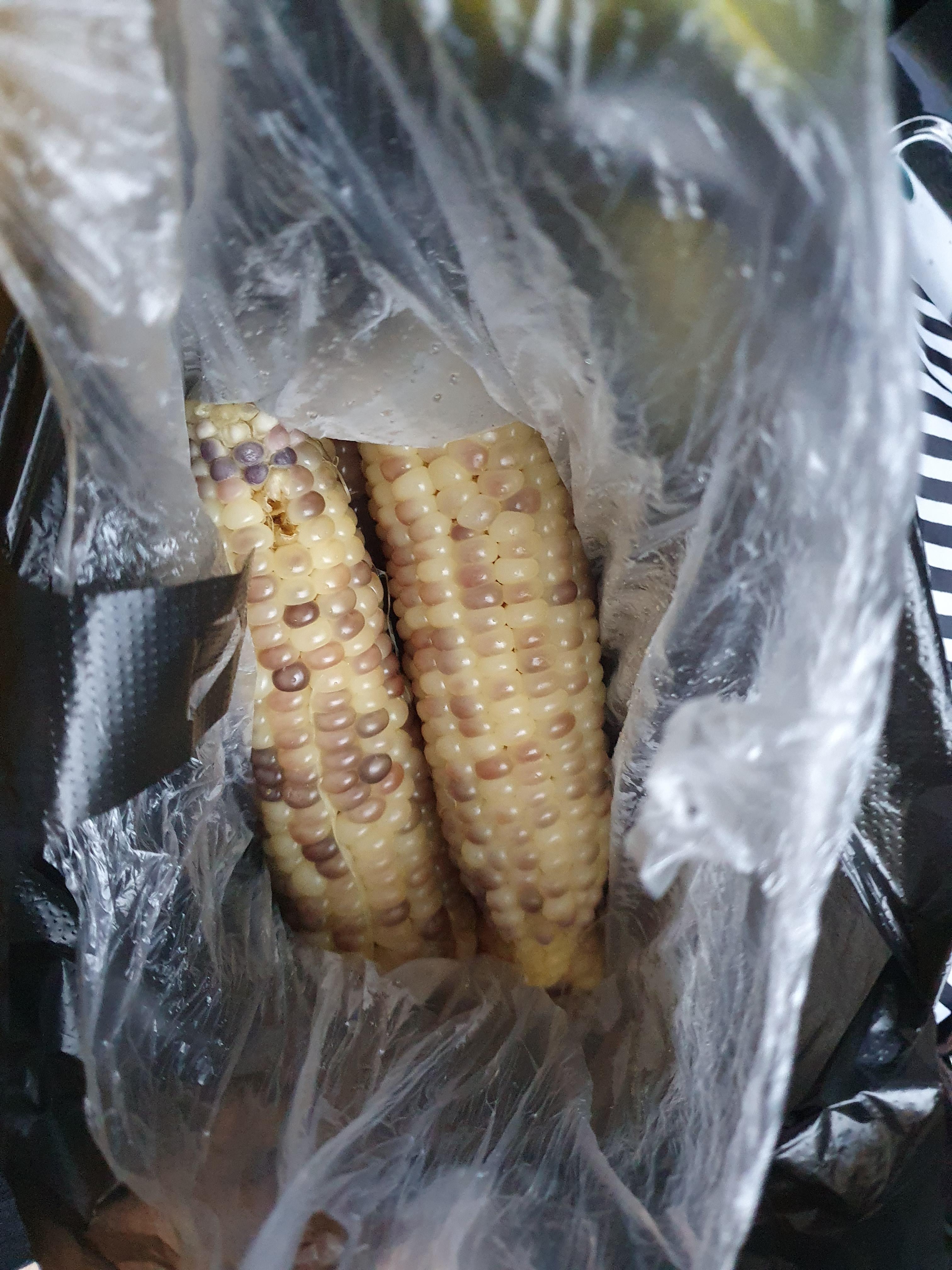검은색이 조금 섞여 있으면은 많이 익으면 딱딱한 경우가 많아서 개인적으로는 하얀 옥수수를 더 좋아합니다.