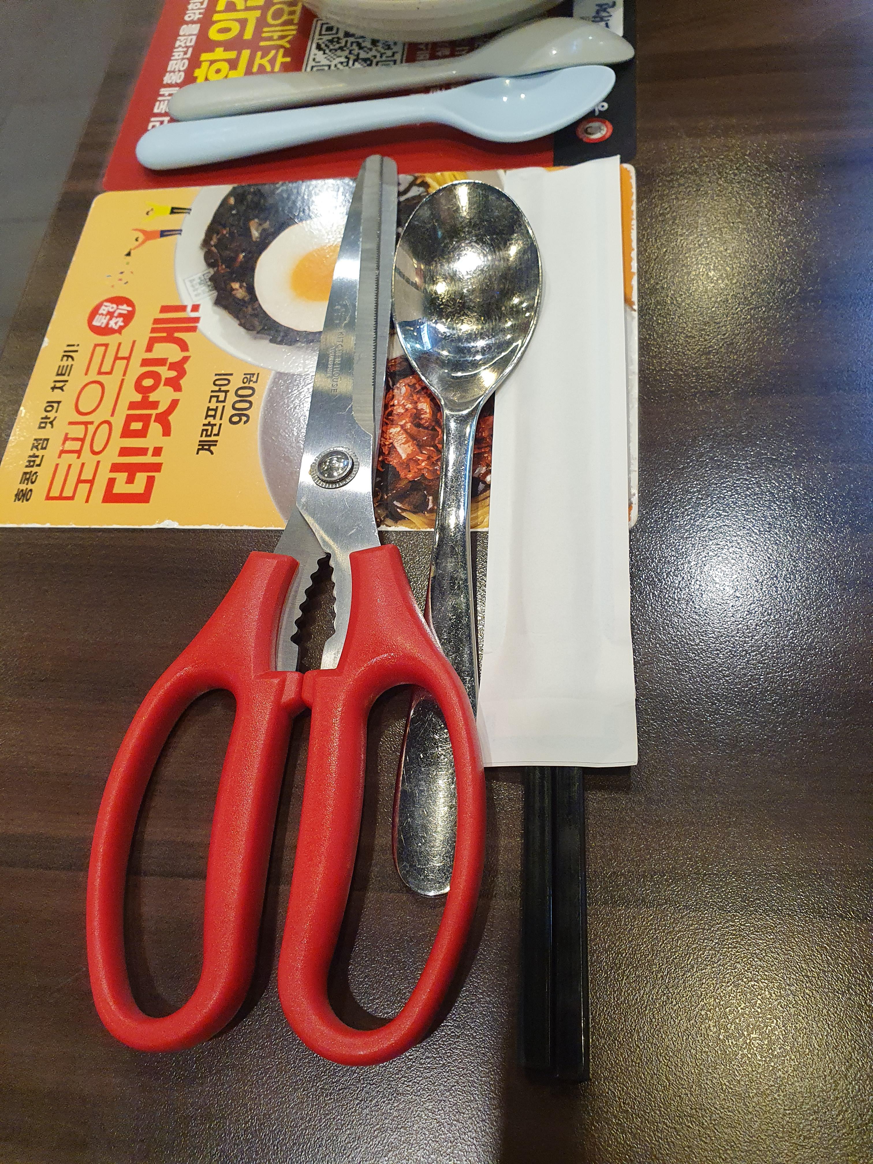 가위나 집게는 단무지 가지고오는 곳에서 아이수저 전부다 있으니, 단무지 가지고 오실때, 챙겨오심 됩니다.