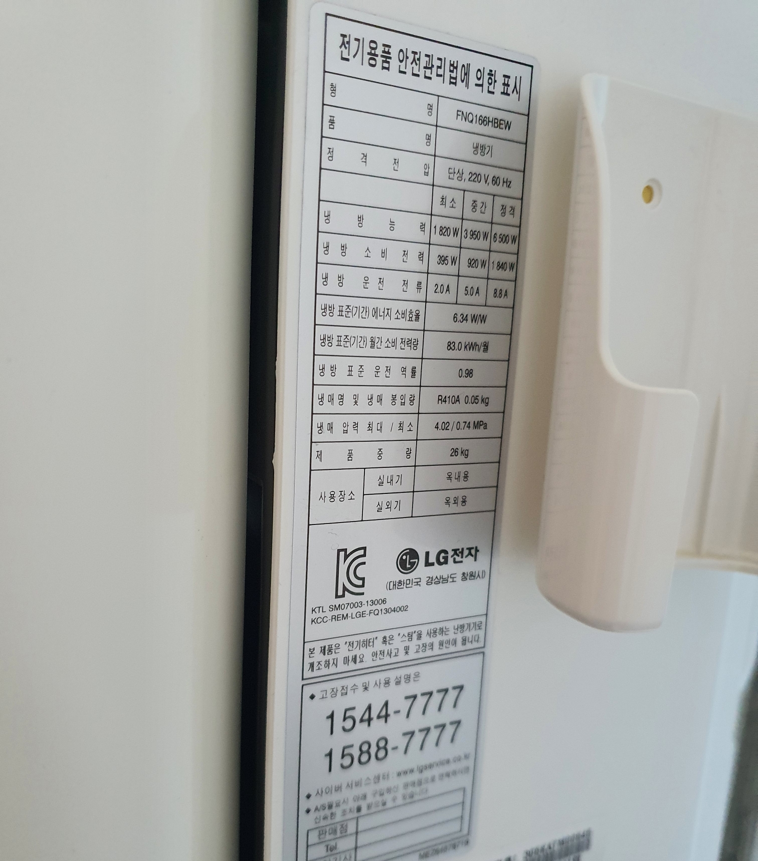 에어컨 측면에 붙은 라벨을 보시면 됩니다.